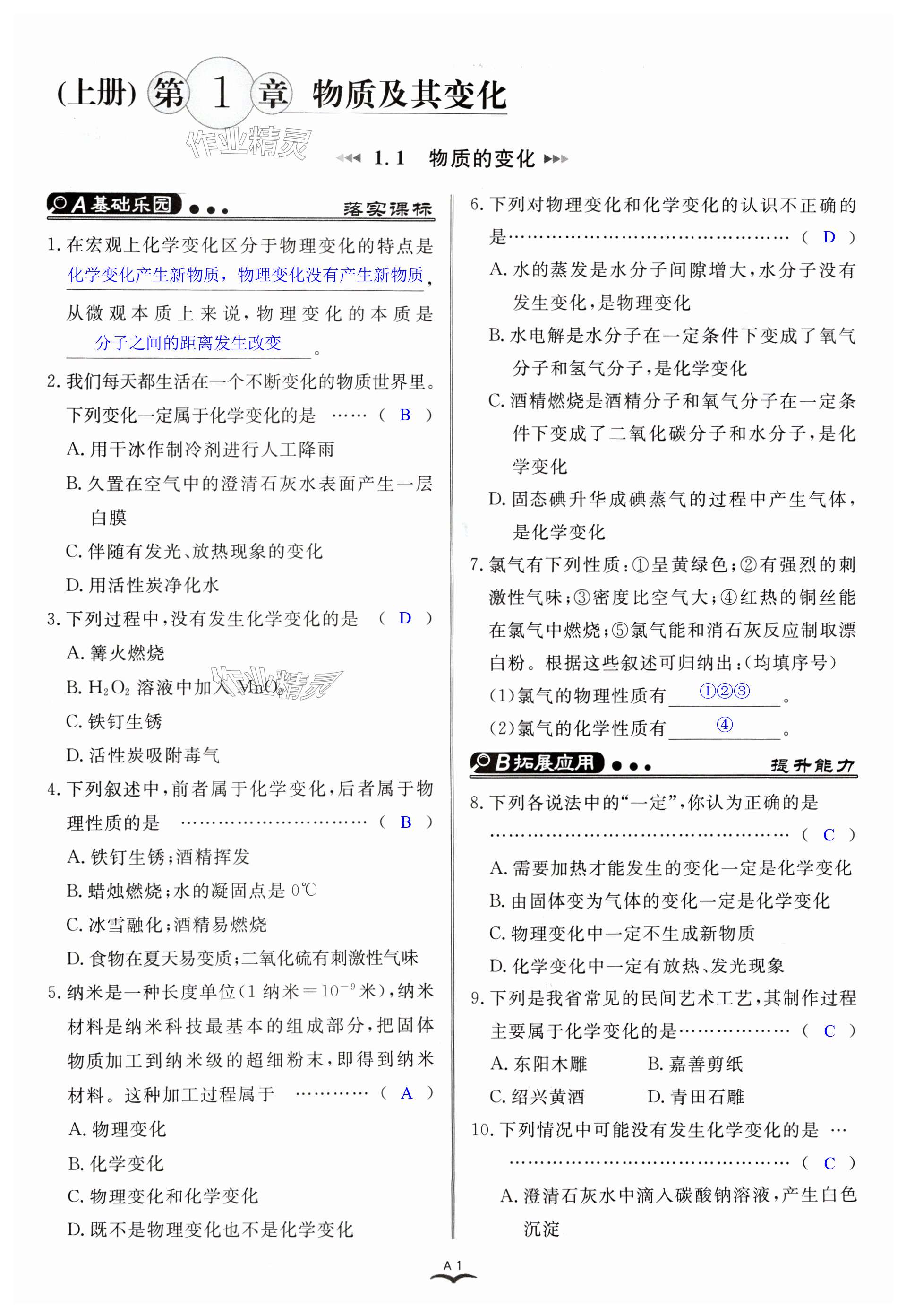 注:目前有些书本章节名称可能整理的还不是很完善,但都是按照顺序排列的,请同学们按照顺序仔细查找。练习册 2024年名师金典BFB初中课时优化九年级科学全一册浙教版 答案主要是用来给同学们做完题方便对答案用的,请勿直接抄袭。