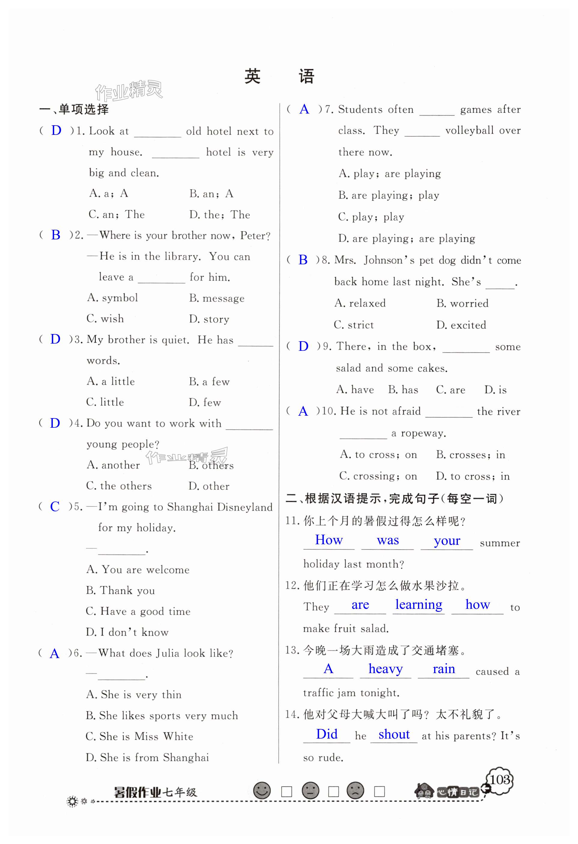注:目前有些书本章节名称可能整理的还不是很完善,但都是按照顺序排列的,请同学们按照顺序仔细查找。练习册 2024年百年学典快乐假期暑假作业七年级综合北师大版 答案主要是用来给同学们做完题方便对答案用的,请勿直接抄袭。