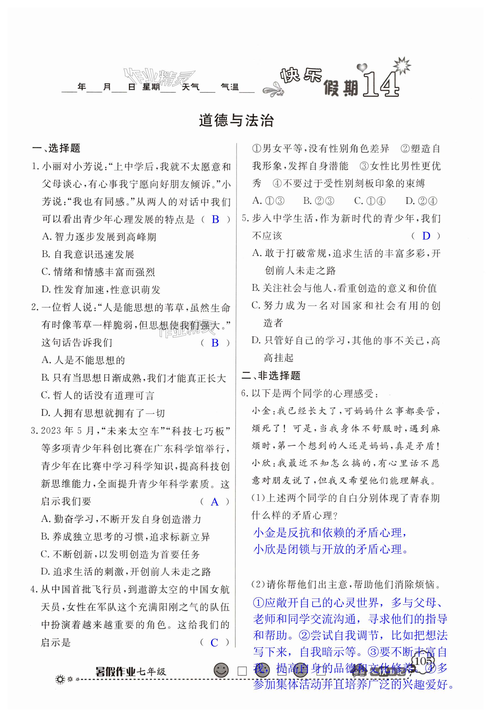 注:目前有些书本章节名称可能整理的还不是很完善,但都是按照顺序排列的,请同学们按照顺序仔细查找。练习册 2024年百年学典快乐假期暑假作业七年级综合北师大版 答案主要是用来给同学们做完题方便对答案用的,请勿直接抄袭。
