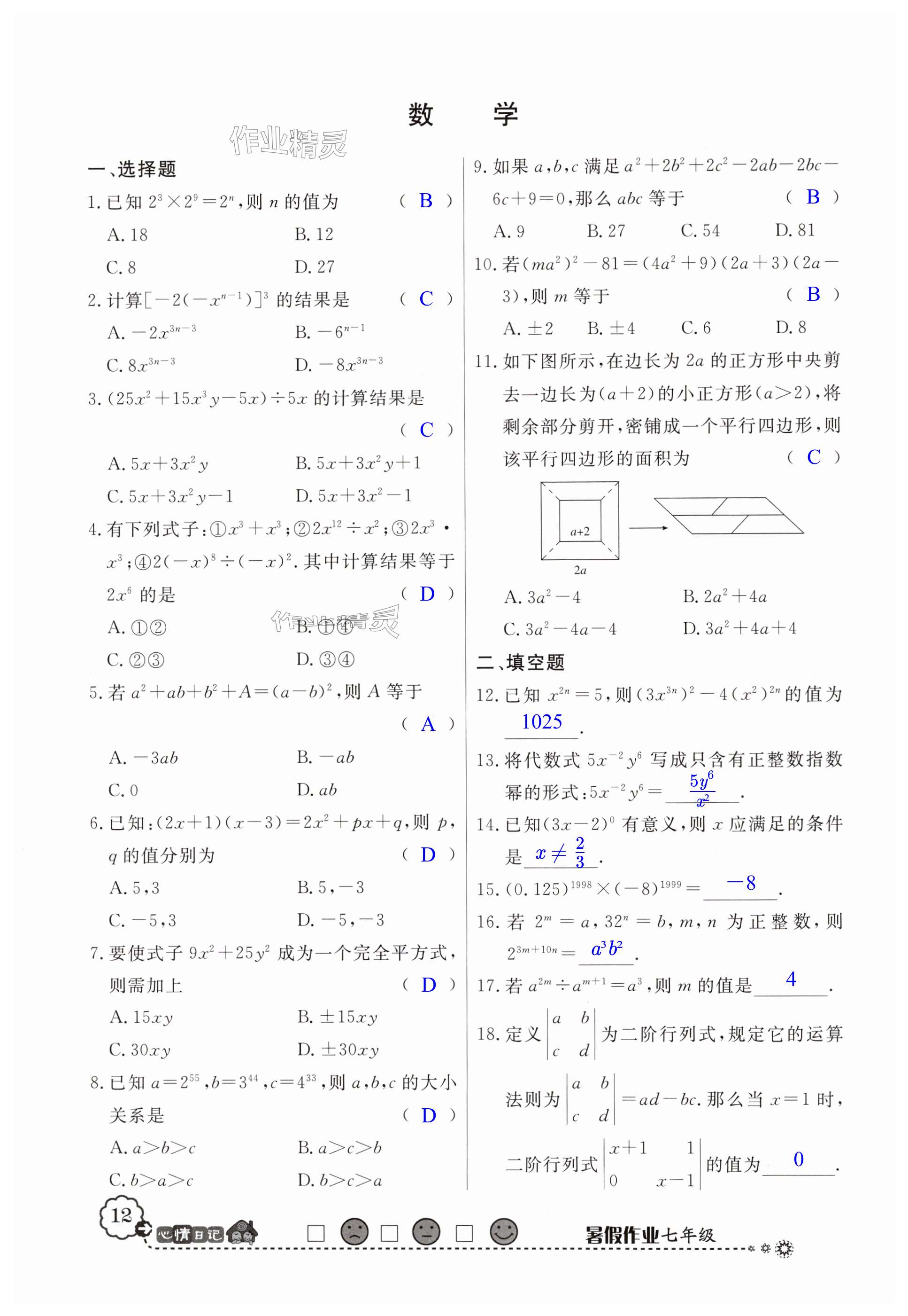 注:目前有些书本章节名称可能整理的还不是很完善,但都是按照顺序排列的,请同学们按照顺序仔细查找。练习册 2024年百年学典快乐假期暑假作业七年级综合北师大版 答案主要是用来给同学们做完题方便对答案用的,请勿直接抄袭。