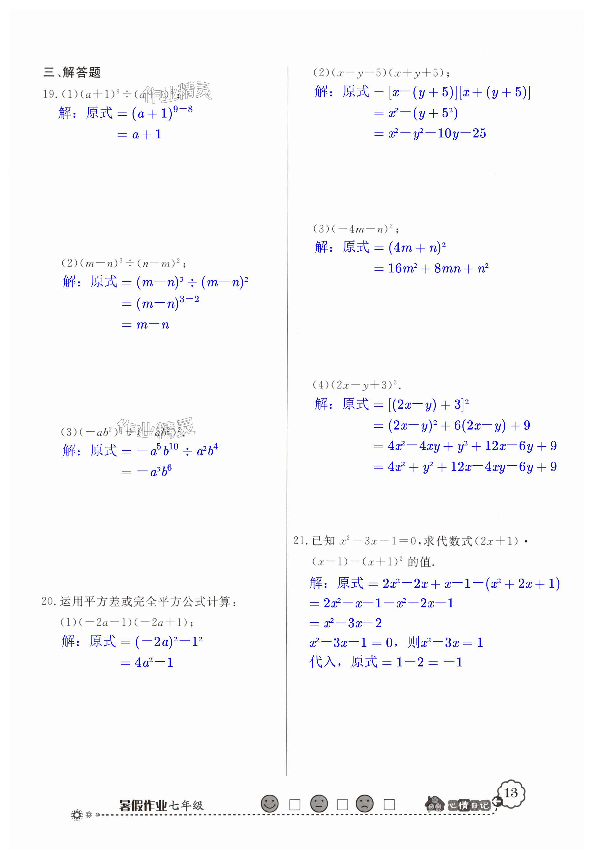注:目前有些书本章节名称可能整理的还不是很完善,但都是按照顺序排列的,请同学们按照顺序仔细查找。练习册 2024年百年学典快乐假期暑假作业七年级综合北师大版 答案主要是用来给同学们做完题方便对答案用的,请勿直接抄袭。
