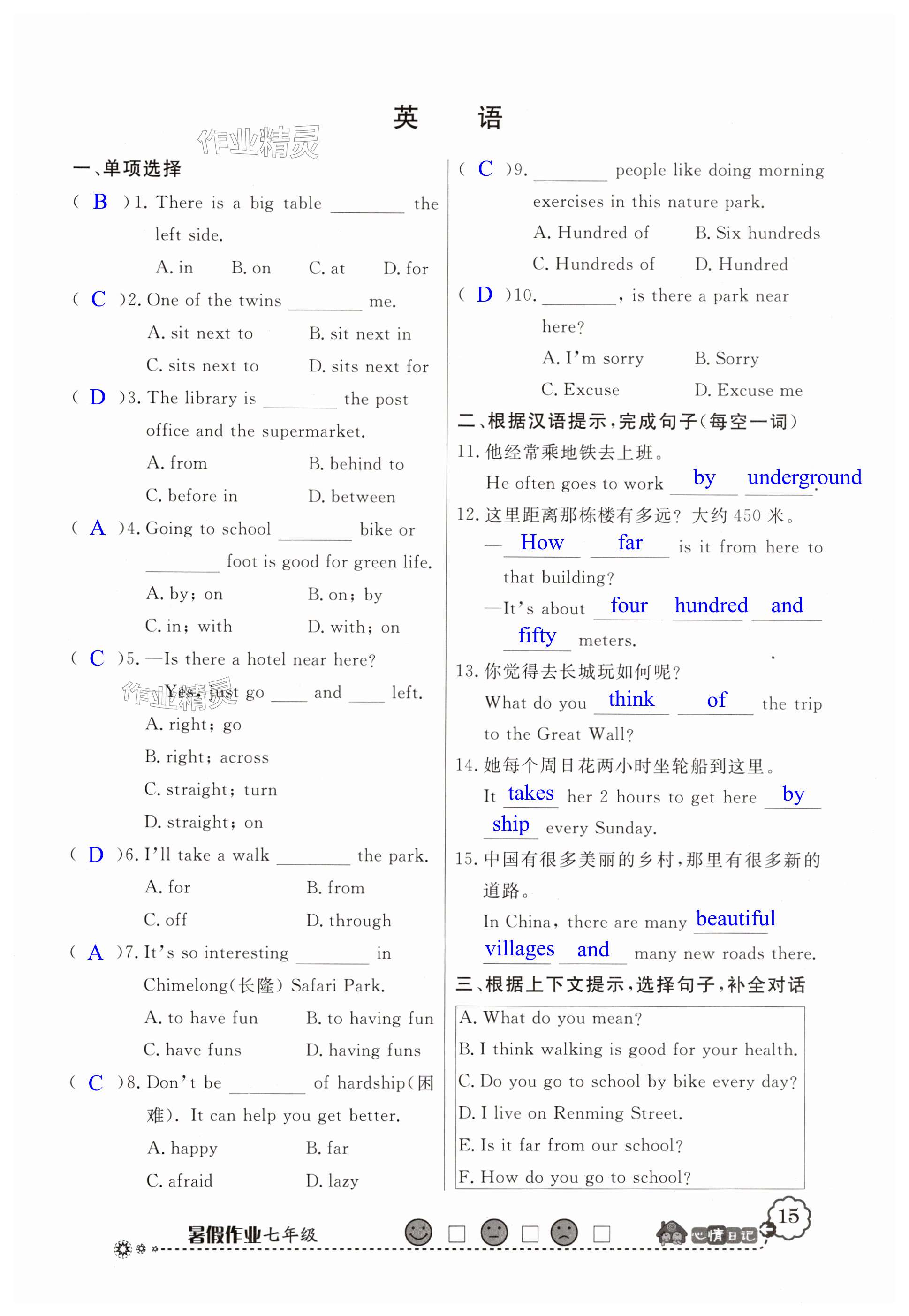 注:目前有些书本章节名称可能整理的还不是很完善,但都是按照顺序排列的,请同学们按照顺序仔细查找。练习册 2024年百年学典快乐假期暑假作业七年级综合北师大版 答案主要是用来给同学们做完题方便对答案用的,请勿直接抄袭。