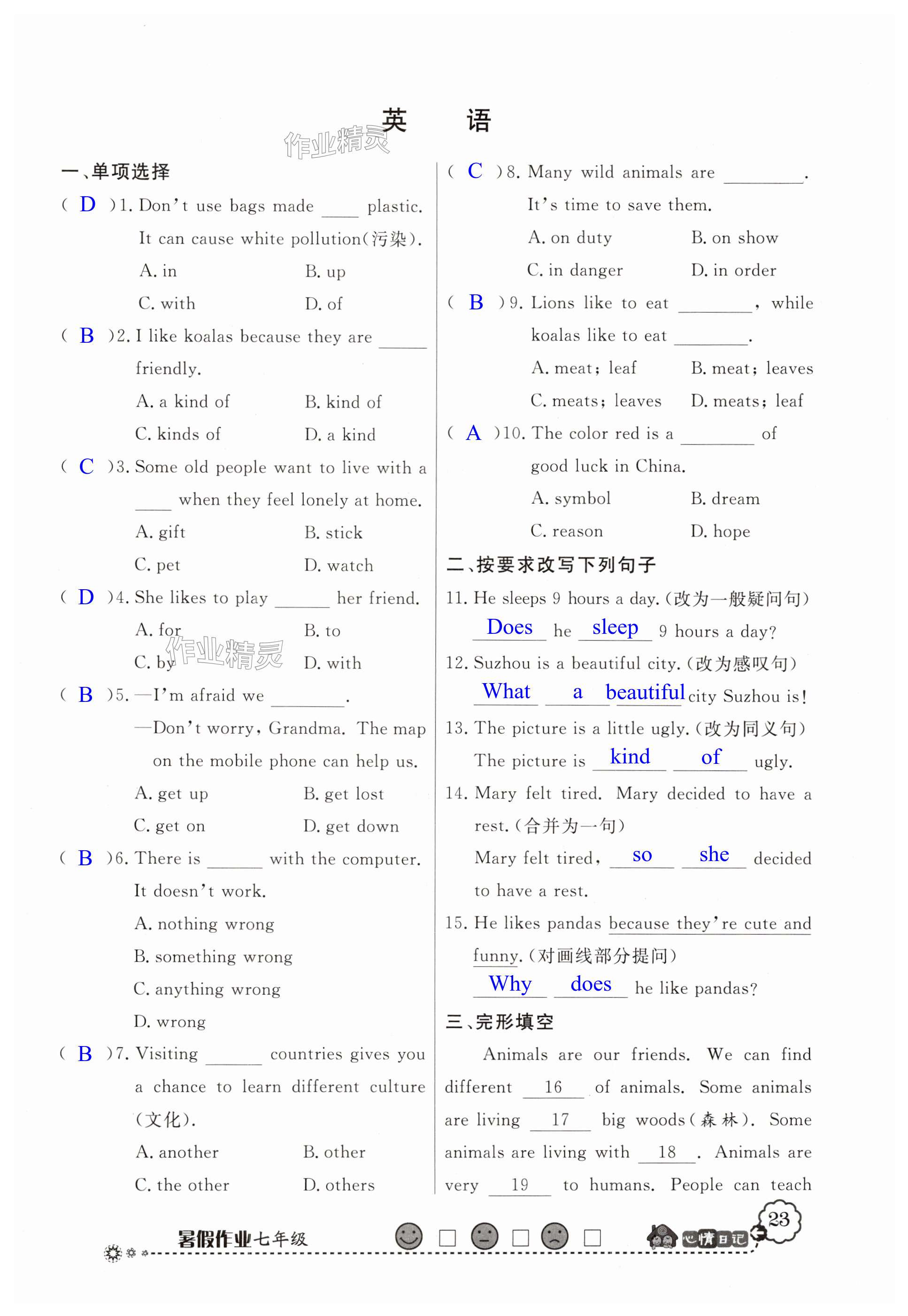 注:目前有些书本章节名称可能整理的还不是很完善,但都是按照顺序排列的,请同学们按照顺序仔细查找。练习册 2024年百年学典快乐假期暑假作业七年级综合北师大版 答案主要是用来给同学们做完题方便对答案用的,请勿直接抄袭。
