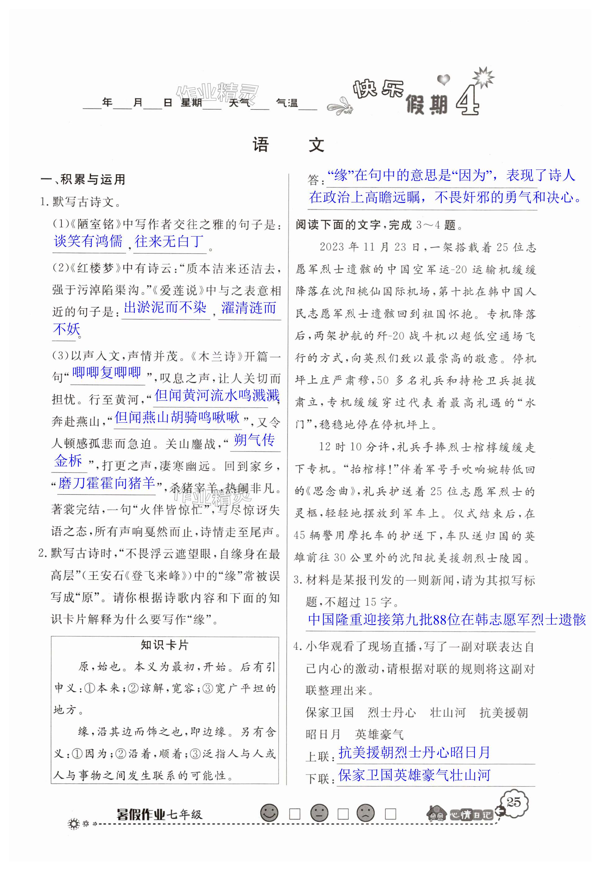 注:目前有些书本章节名称可能整理的还不是很完善,但都是按照顺序排列的,请同学们按照顺序仔细查找。练习册 2024年百年学典快乐假期暑假作业七年级综合北师大版 答案主要是用来给同学们做完题方便对答案用的,请勿直接抄袭。