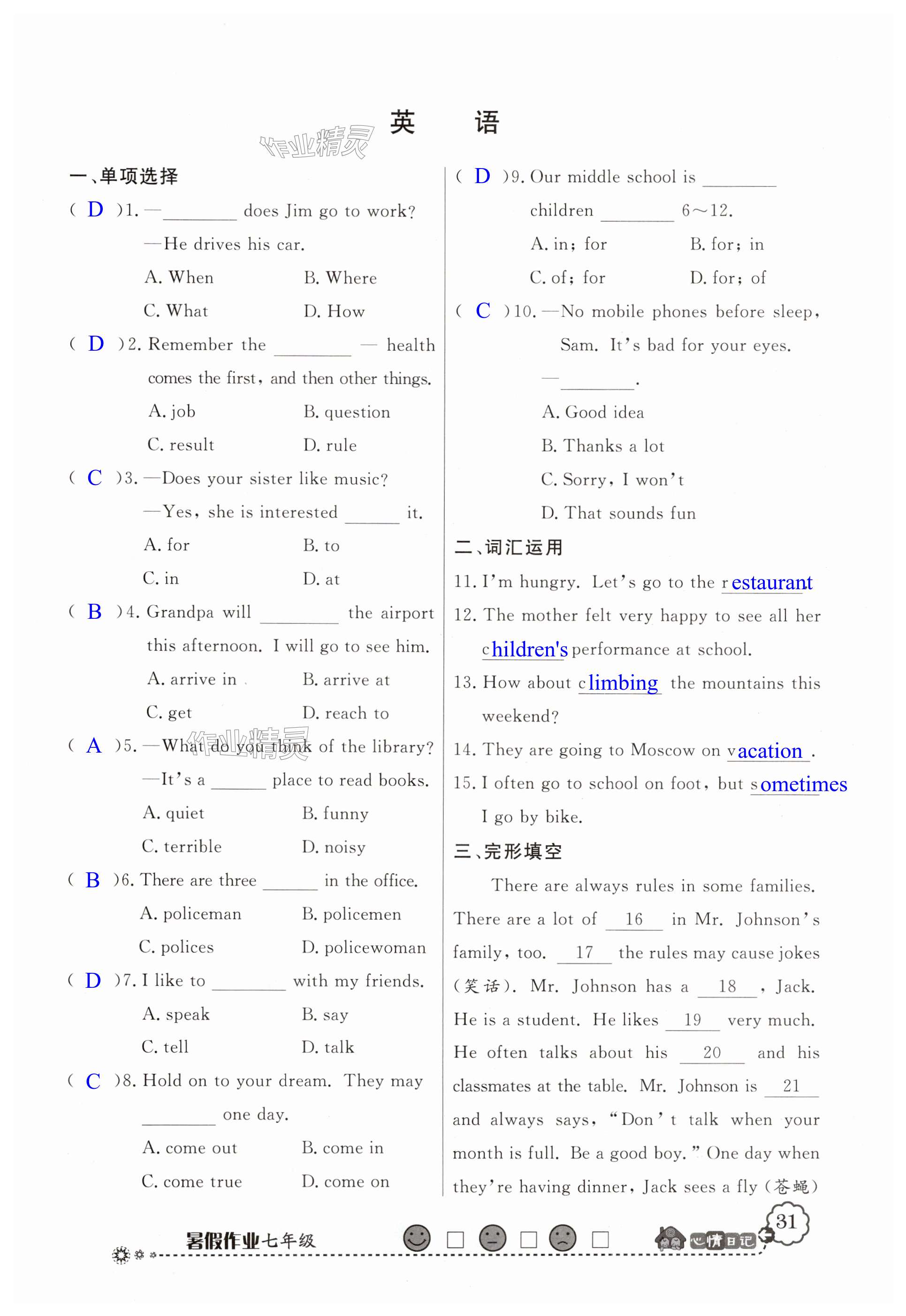 注:目前有些书本章节名称可能整理的还不是很完善,但都是按照顺序排列的,请同学们按照顺序仔细查找。练习册 2024年百年学典快乐假期暑假作业七年级综合北师大版 答案主要是用来给同学们做完题方便对答案用的,请勿直接抄袭。