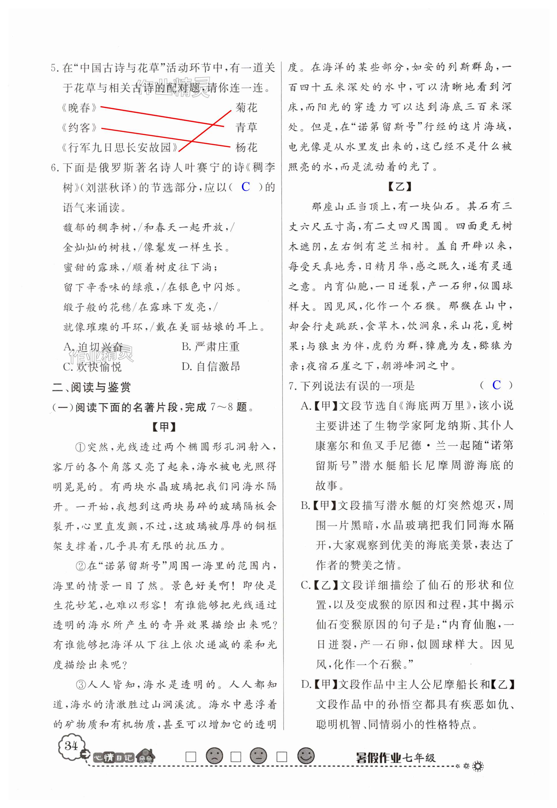 注:目前有些书本章节名称可能整理的还不是很完善,但都是按照顺序排列的,请同学们按照顺序仔细查找。练习册 2024年百年学典快乐假期暑假作业七年级综合北师大版 答案主要是用来给同学们做完题方便对答案用的,请勿直接抄袭。