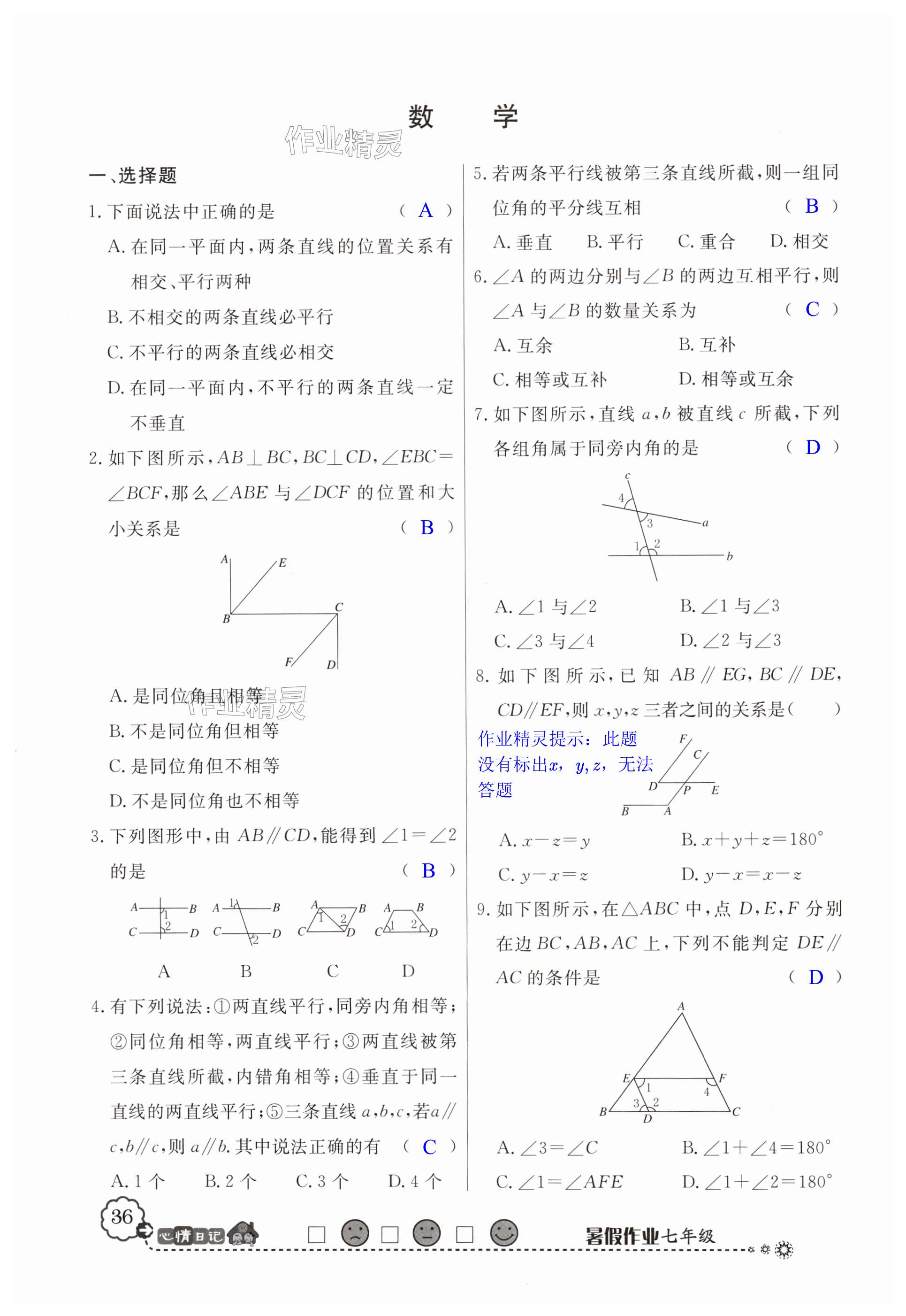 注:目前有些书本章节名称可能整理的还不是很完善,但都是按照顺序排列的,请同学们按照顺序仔细查找。练习册 2024年百年学典快乐假期暑假作业七年级综合北师大版 答案主要是用来给同学们做完题方便对答案用的,请勿直接抄袭。