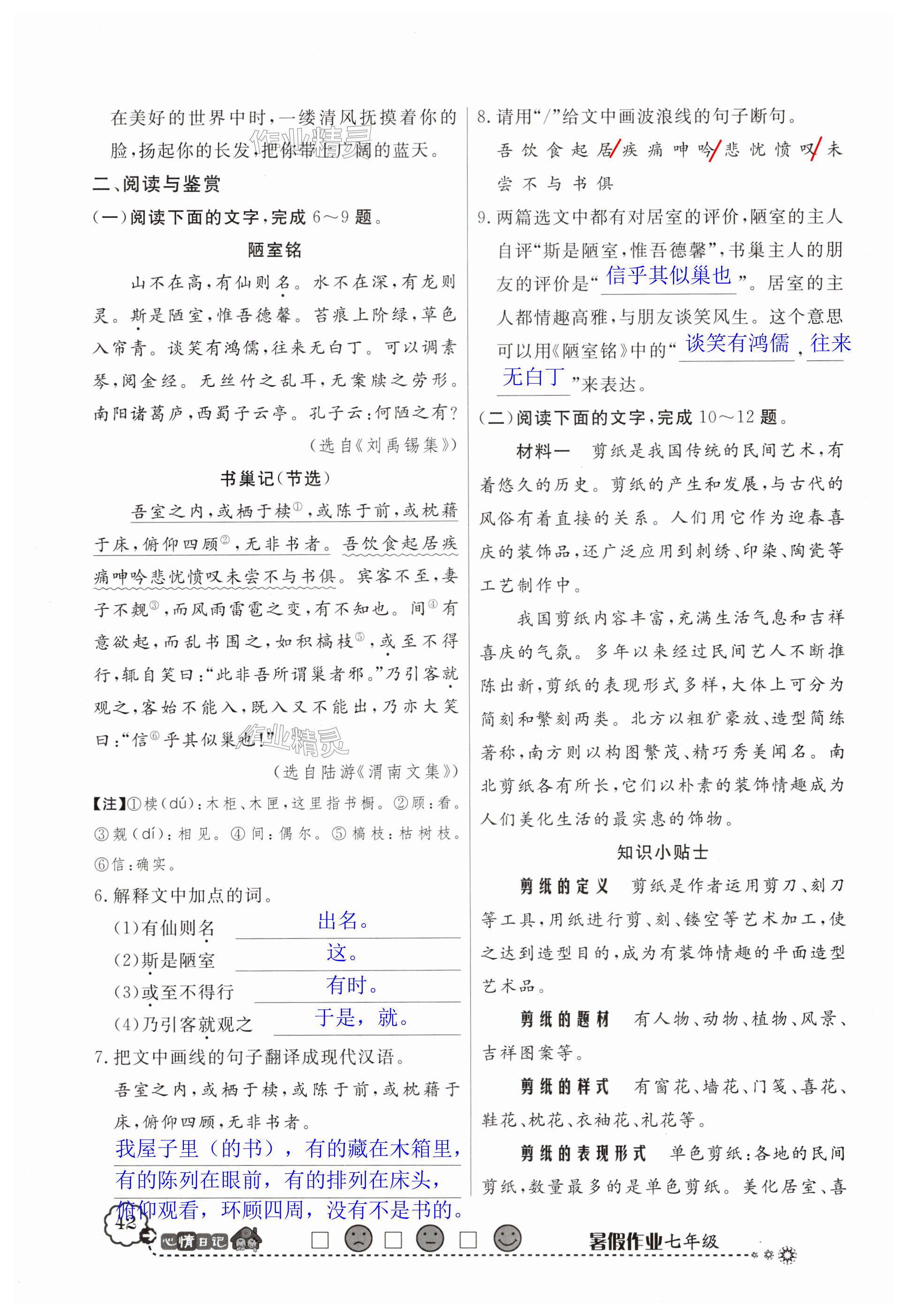 注:目前有些书本章节名称可能整理的还不是很完善,但都是按照顺序排列的,请同学们按照顺序仔细查找。练习册 2024年百年学典快乐假期暑假作业七年级综合北师大版 答案主要是用来给同学们做完题方便对答案用的,请勿直接抄袭。