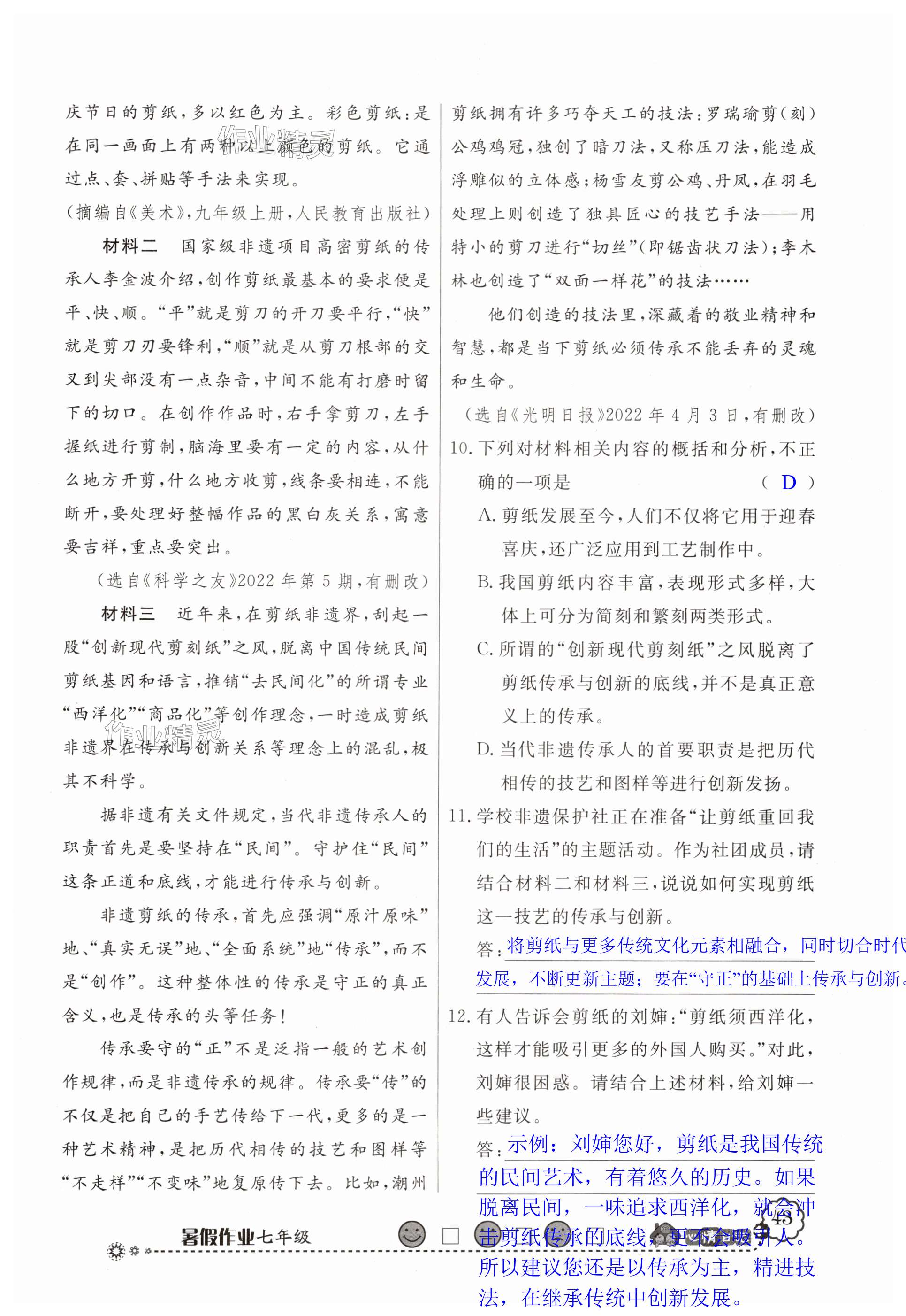 注:目前有些书本章节名称可能整理的还不是很完善,但都是按照顺序排列的,请同学们按照顺序仔细查找。练习册 2024年百年学典快乐假期暑假作业七年级综合北师大版 答案主要是用来给同学们做完题方便对答案用的,请勿直接抄袭。