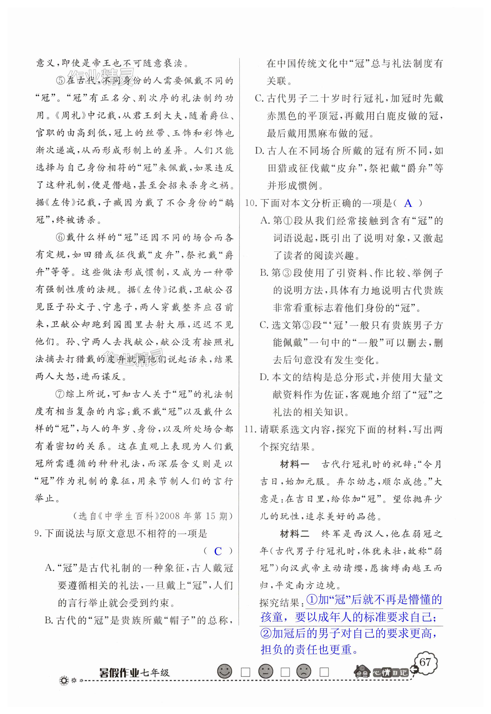 注:目前有些书本章节名称可能整理的还不是很完善,但都是按照顺序排列的,请同学们按照顺序仔细查找。练习册 2024年百年学典快乐假期暑假作业七年级综合北师大版 答案主要是用来给同学们做完题方便对答案用的,请勿直接抄袭。