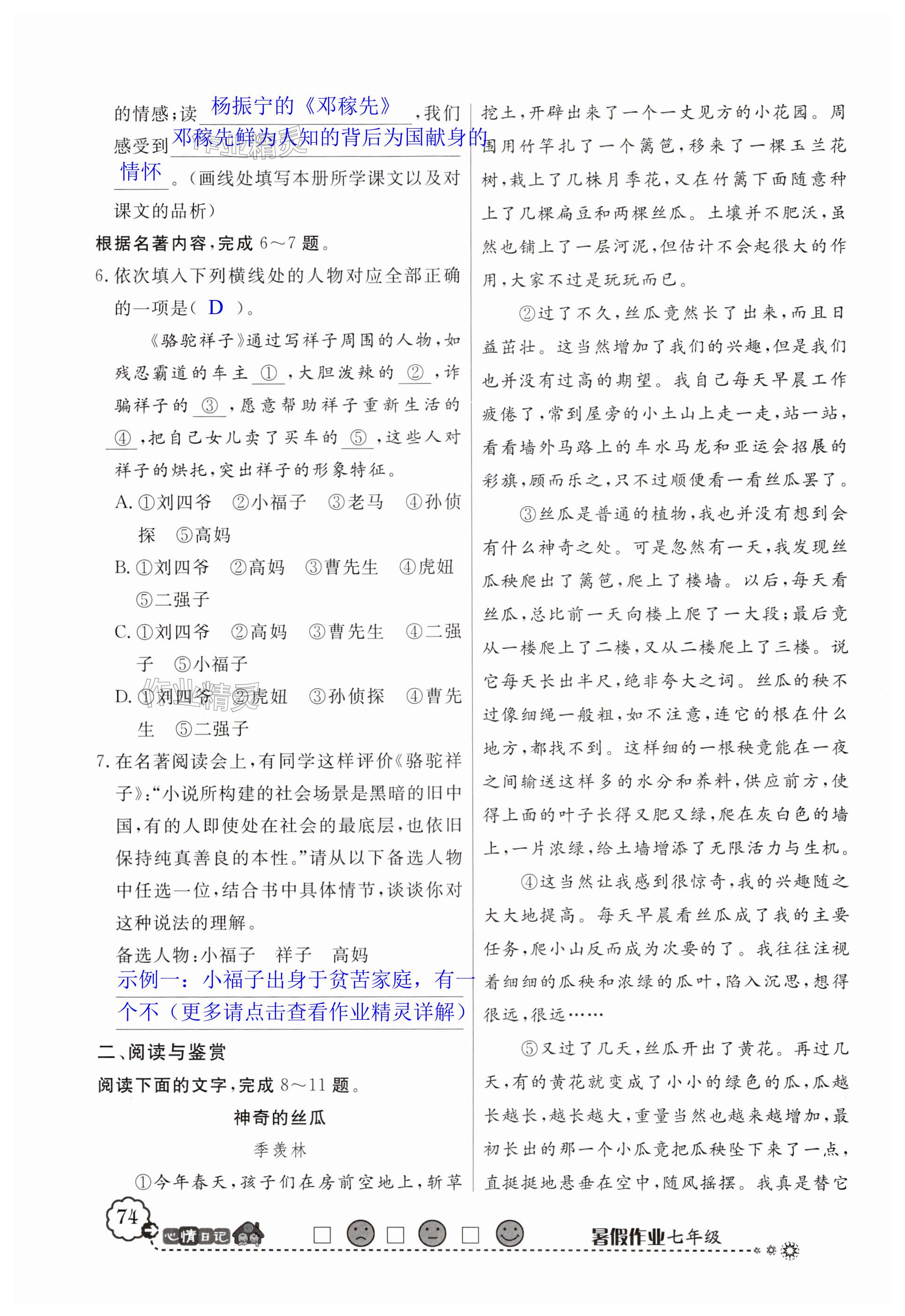 注:目前有些书本章节名称可能整理的还不是很完善,但都是按照顺序排列的,请同学们按照顺序仔细查找。练习册 2024年百年学典快乐假期暑假作业七年级综合北师大版 答案主要是用来给同学们做完题方便对答案用的,请勿直接抄袭。