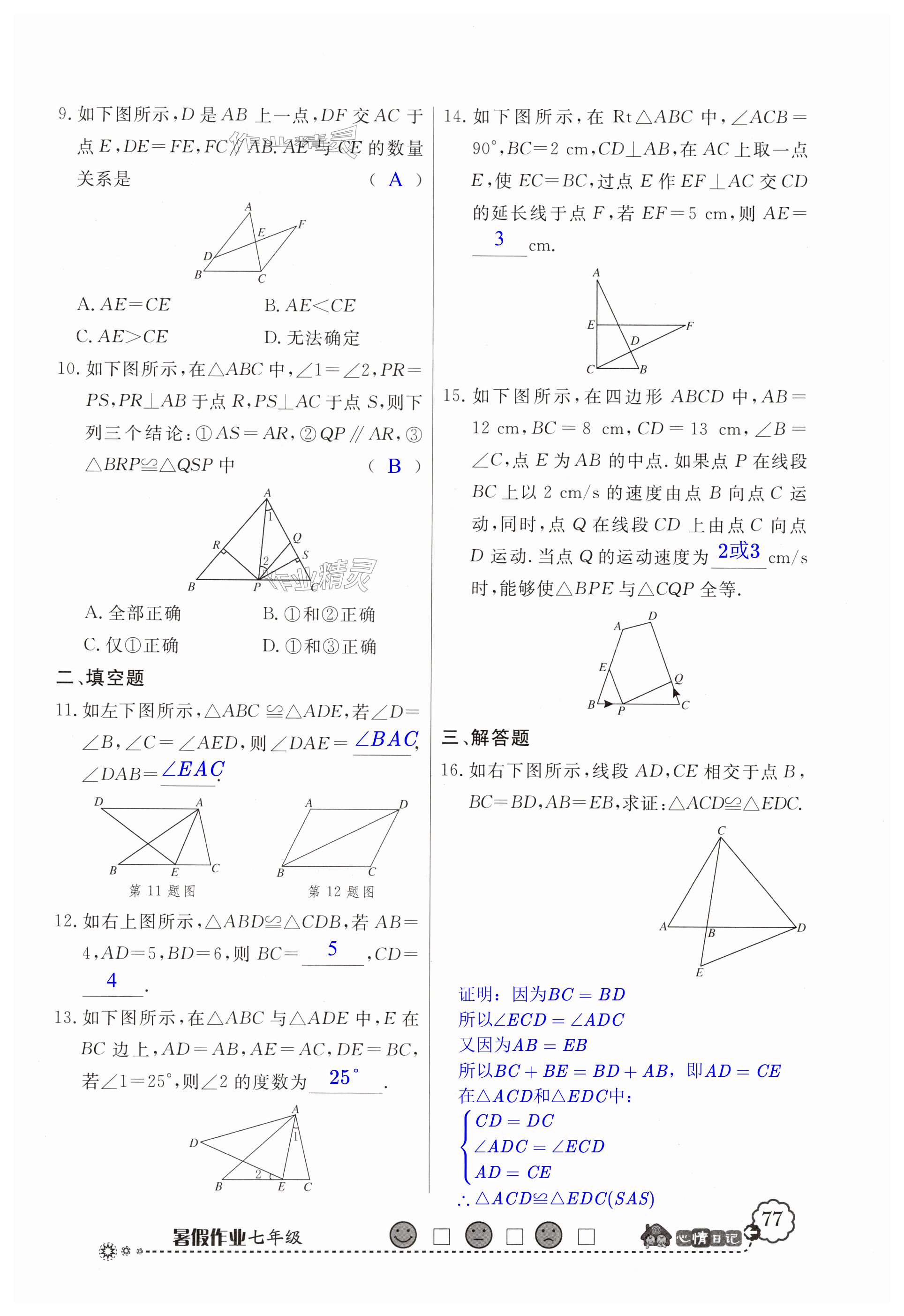 注:目前有些书本章节名称可能整理的还不是很完善,但都是按照顺序排列的,请同学们按照顺序仔细查找。练习册 2024年百年学典快乐假期暑假作业七年级综合北师大版 答案主要是用来给同学们做完题方便对答案用的,请勿直接抄袭。