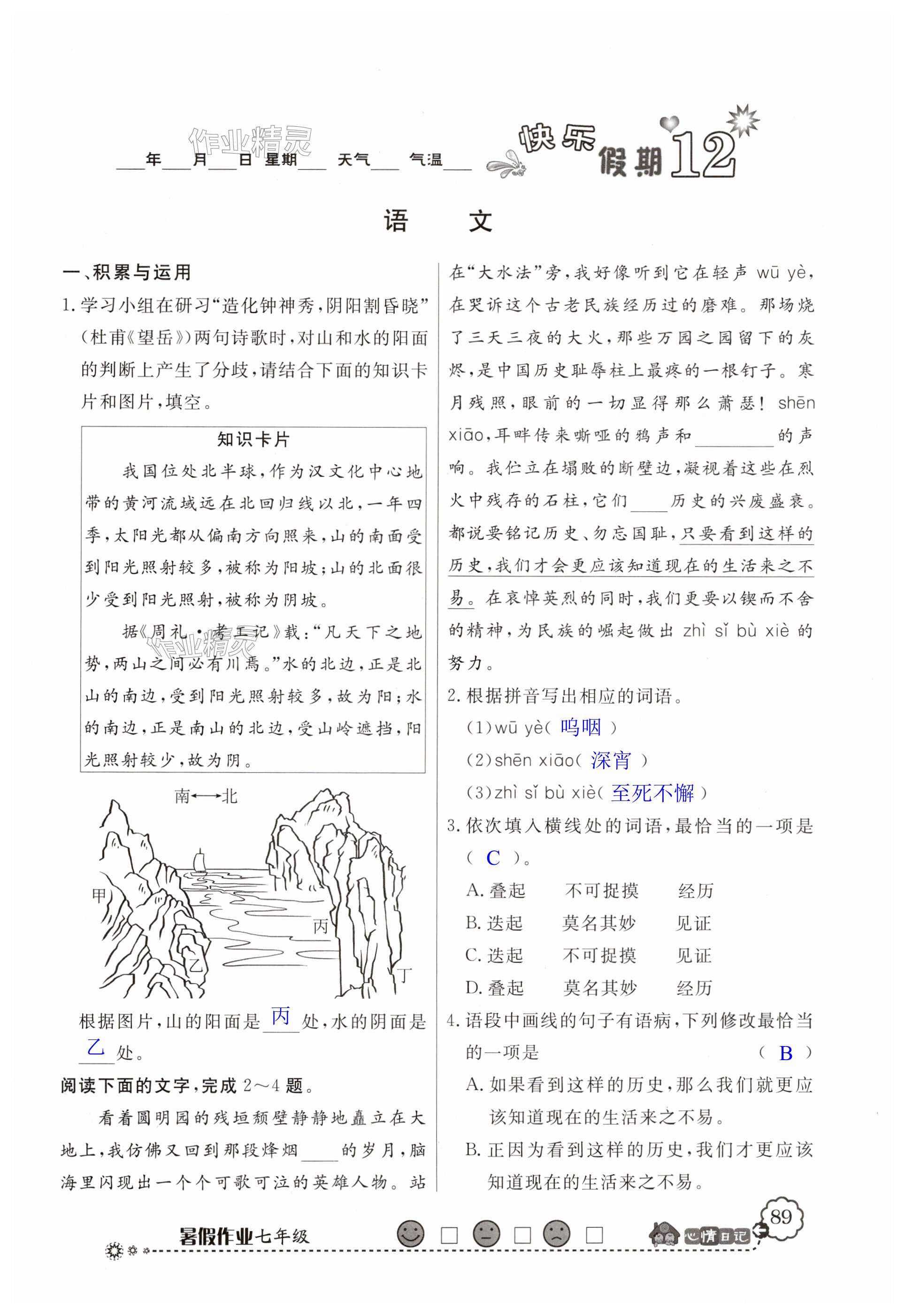 注:目前有些书本章节名称可能整理的还不是很完善,但都是按照顺序排列的,请同学们按照顺序仔细查找。练习册 2024年百年学典快乐假期暑假作业七年级综合北师大版 答案主要是用来给同学们做完题方便对答案用的,请勿直接抄袭。