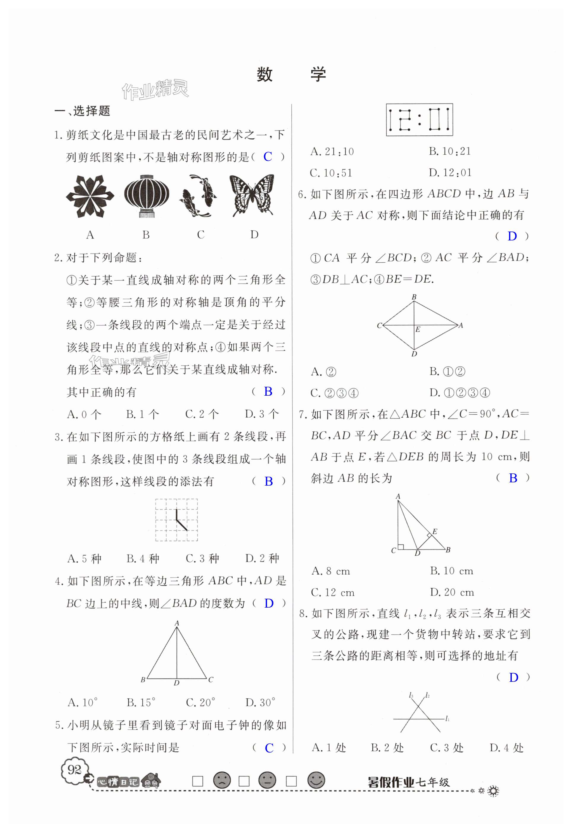 注:目前有些书本章节名称可能整理的还不是很完善,但都是按照顺序排列的,请同学们按照顺序仔细查找。练习册 2024年百年学典快乐假期暑假作业七年级综合北师大版 答案主要是用来给同学们做完题方便对答案用的,请勿直接抄袭。