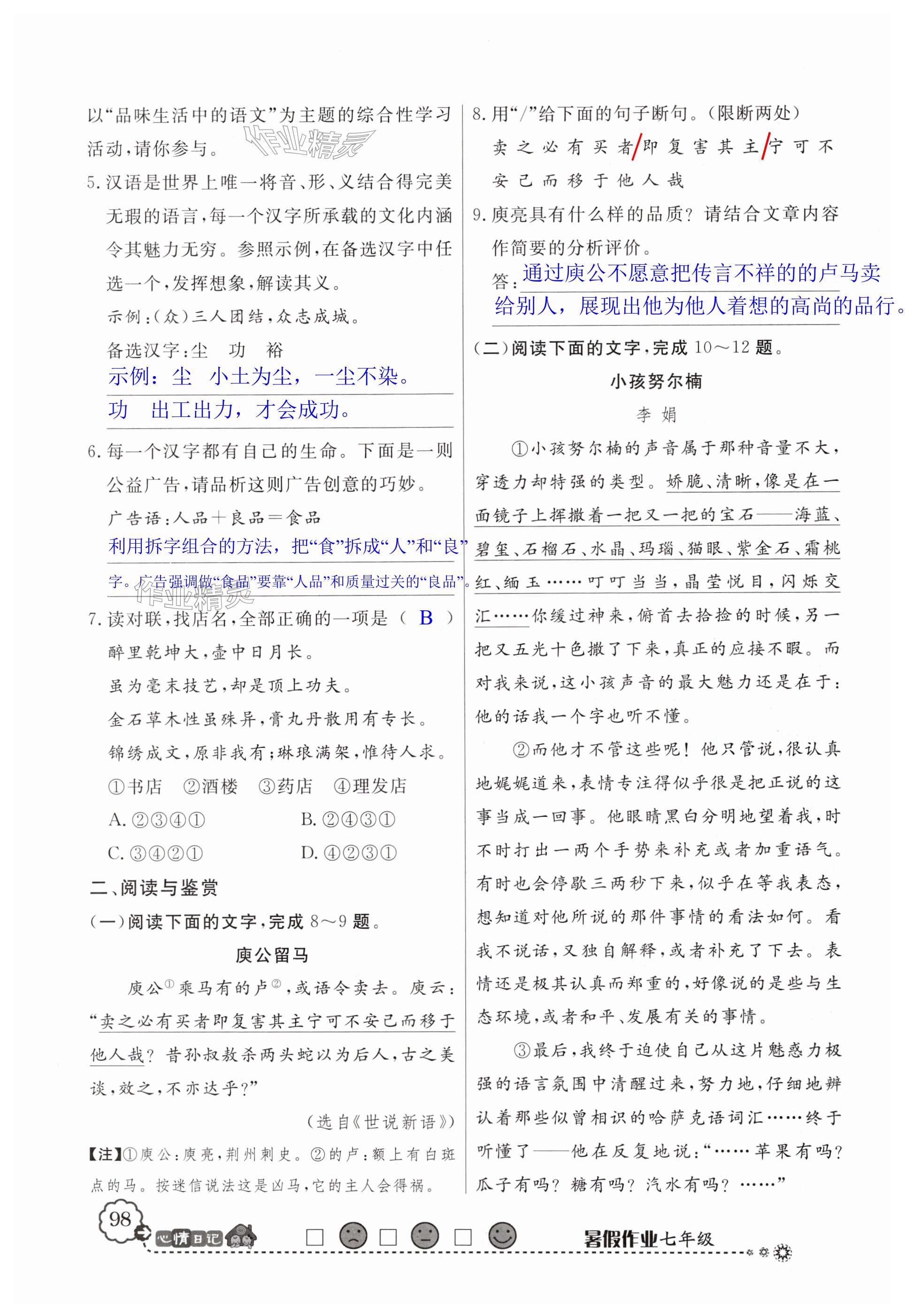 注:目前有些书本章节名称可能整理的还不是很完善,但都是按照顺序排列的,请同学们按照顺序仔细查找。练习册 2024年百年学典快乐假期暑假作业七年级综合北师大版 答案主要是用来给同学们做完题方便对答案用的,请勿直接抄袭。