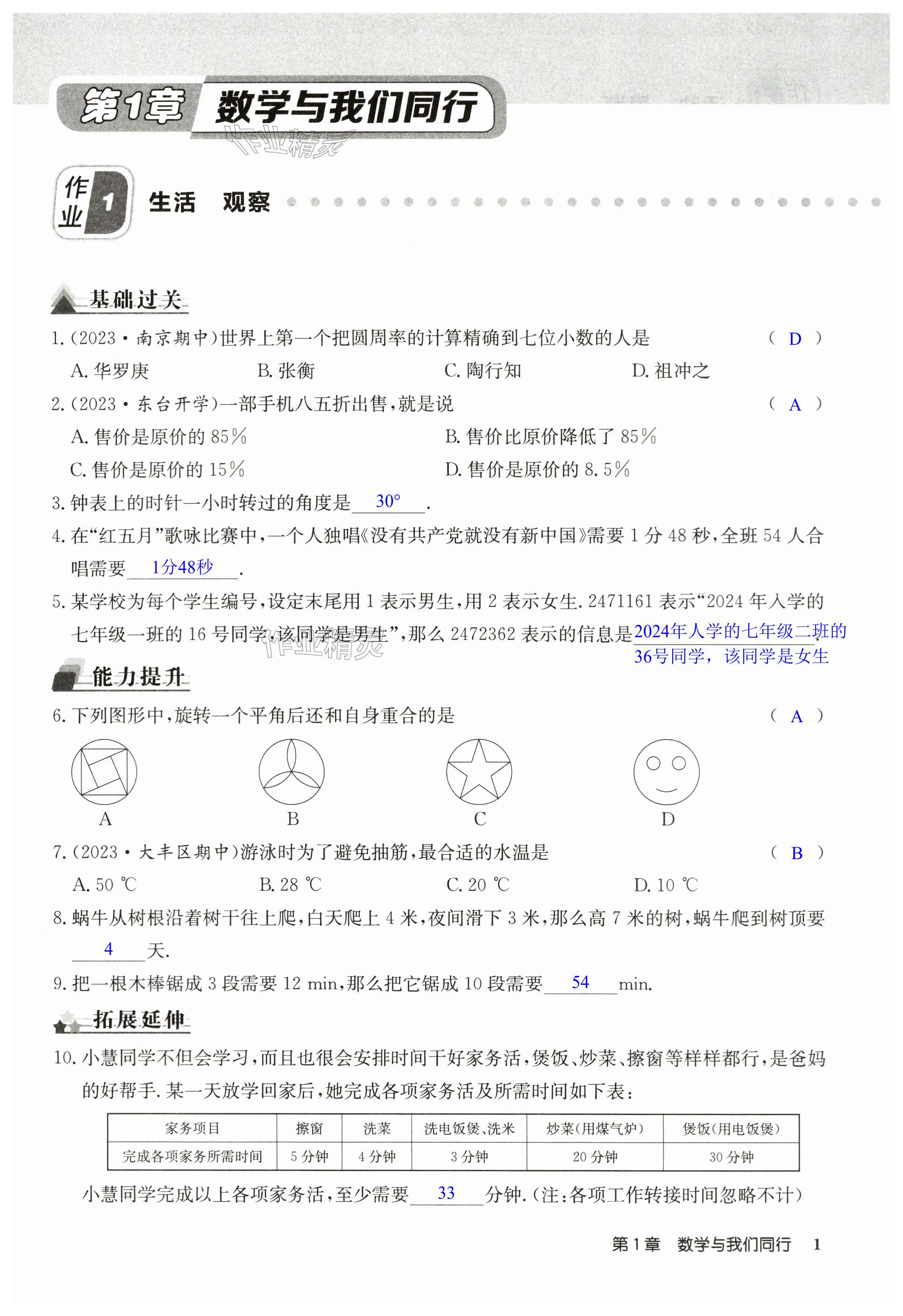 注:目前有些书本章节名称可能整理的还不是很完善,但都是按照顺序排列的,请同学们按照顺序仔细查找。练习册2024年启东中学作业本七年级数学上册苏科版盐城专版答案主要是用来给同学们做完题方便对答案用的,请勿直接抄袭。