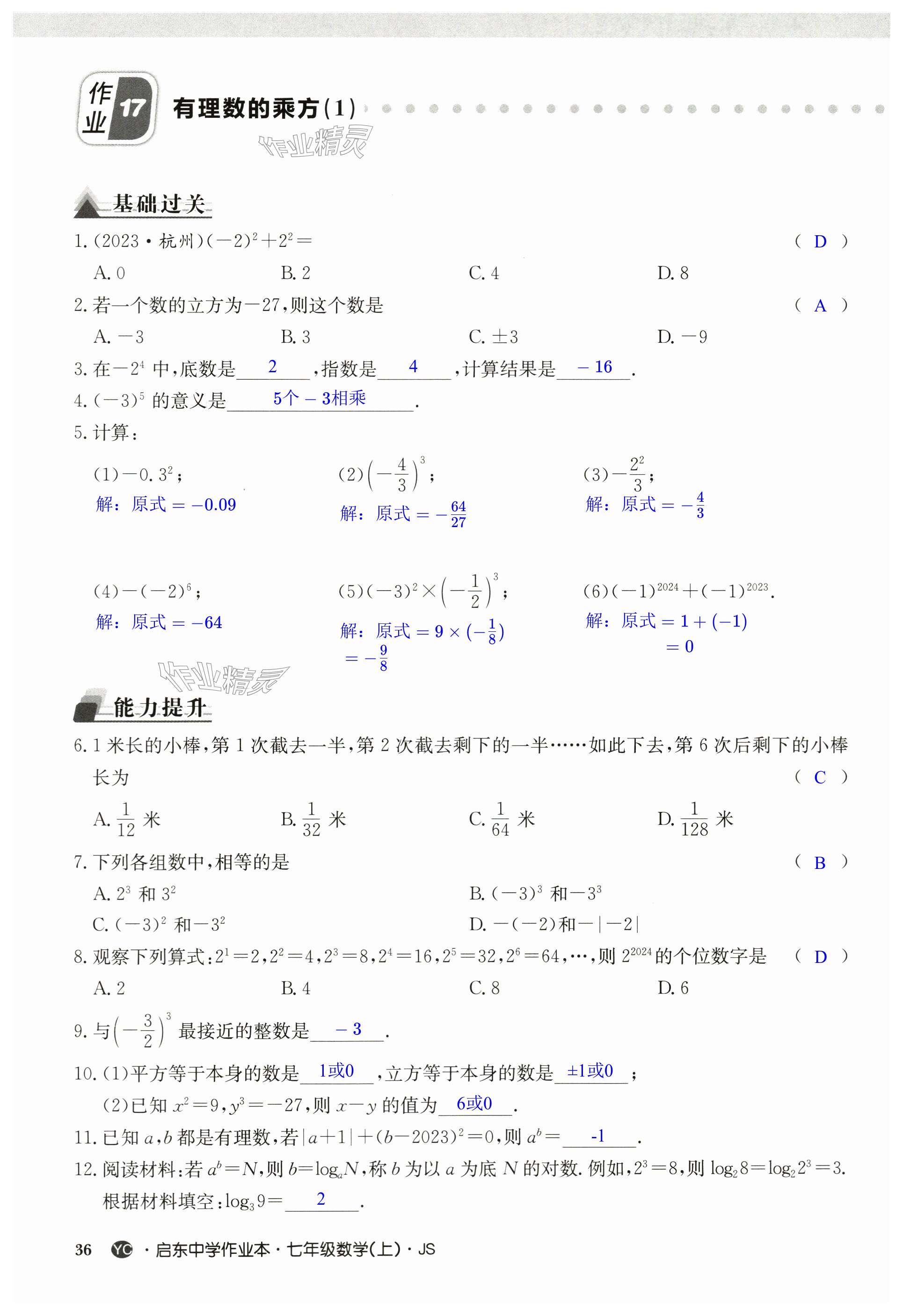 注:目前有些书本章节名称可能整理的还不是很完善,但都是按照顺序排列的,请同学们按照顺序仔细查找。练习册 2024年启东中学作业本七年级数学上册苏科版盐城专版 答案主要是用来给同学们做完题方便对答案用的,请勿直接抄袭。
