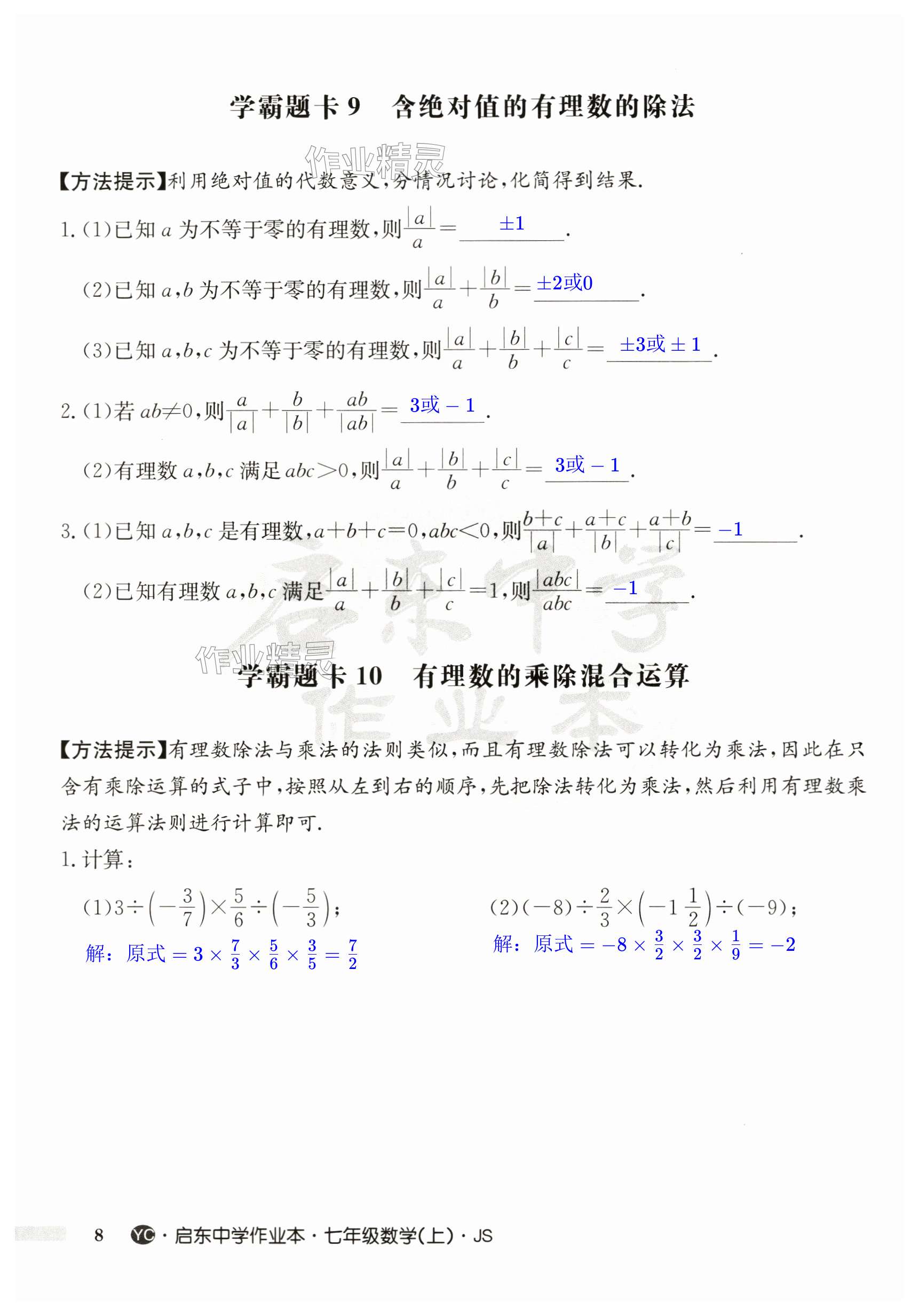 注:目前有些书本章节名称可能整理的还不是很完善,但都是按照顺序排列的,请同学们按照顺序仔细查找。练习册 2024年启东中学作业本七年级数学上册苏科版盐城专版 答案主要是用来给同学们做完题方便对答案用的,请勿直接抄袭。