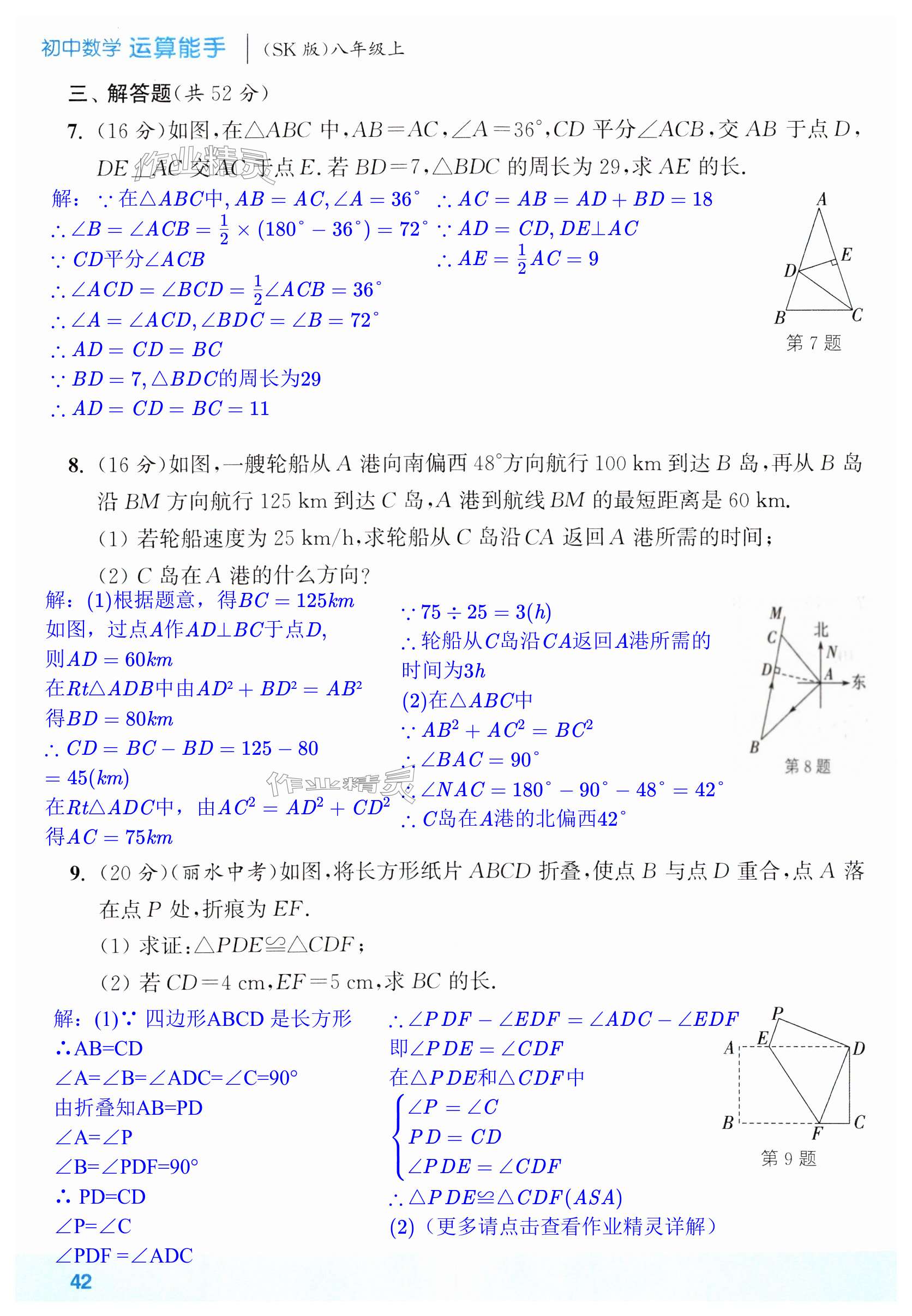 注:目前有些书本章节名称可能整理的还不是很完善,但都是按照顺序排列的,请同学们按照顺序仔细查找。练习册 2024年通城学典初中数学运算能手八年级上册苏科版 答案主要是用来给同学们做完题方便对答案用的,请勿直接抄袭。