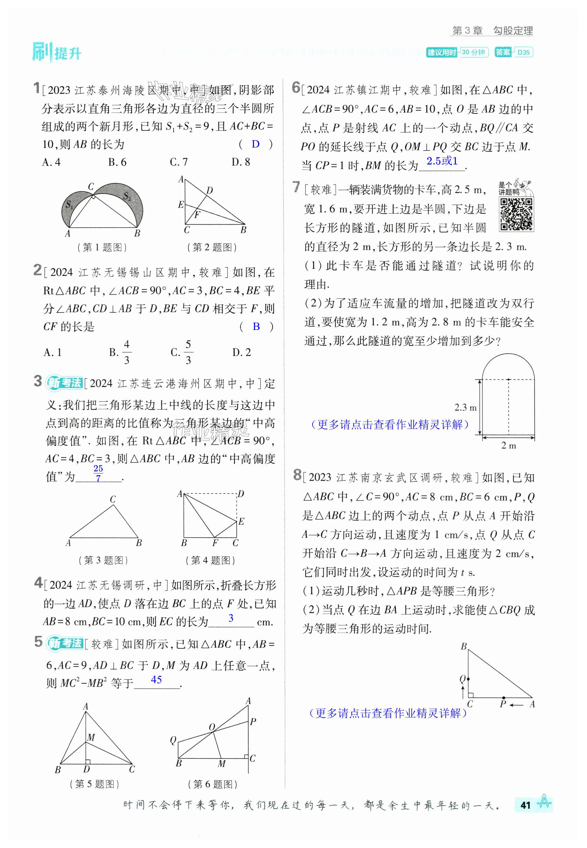 注:目前有些书本章节名称可能整理的还不是很完善,但都是按照顺序排列的,请同学们按照顺序仔细查找。练习册 2024年初中必刷题八年级数学上册苏科版 答案主要是用来给同学们做完题方便对答案用的,请勿直接抄袭。