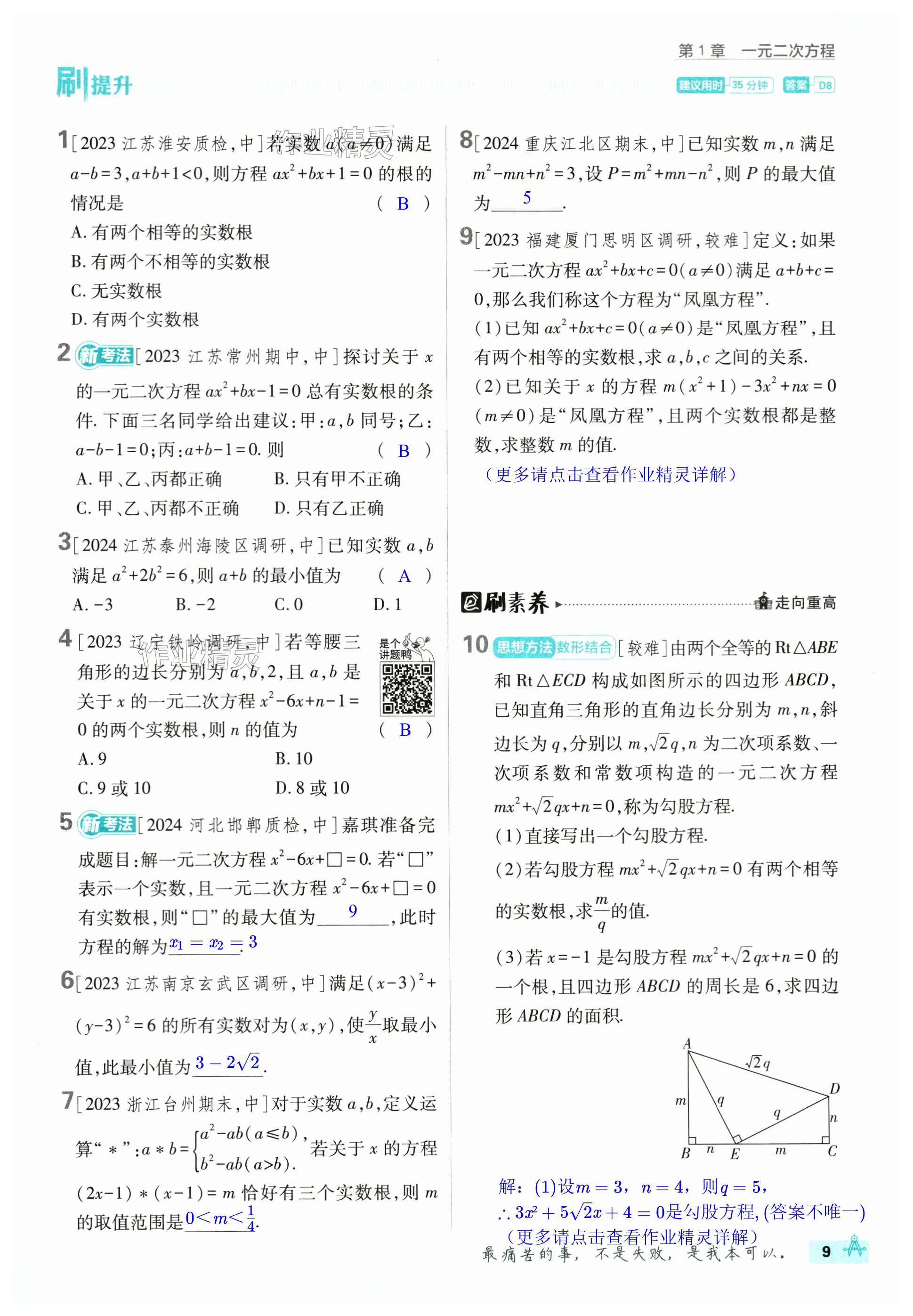 注:目前有些书本章节名称可能整理的还不是很完善,但都是按照顺序排列的,请同学们按照顺序仔细查找。练习册 2024年初中必刷题九年级数学上册苏科版 答案主要是用来给同学们做完题方便对答案用的,请勿直接抄袭。