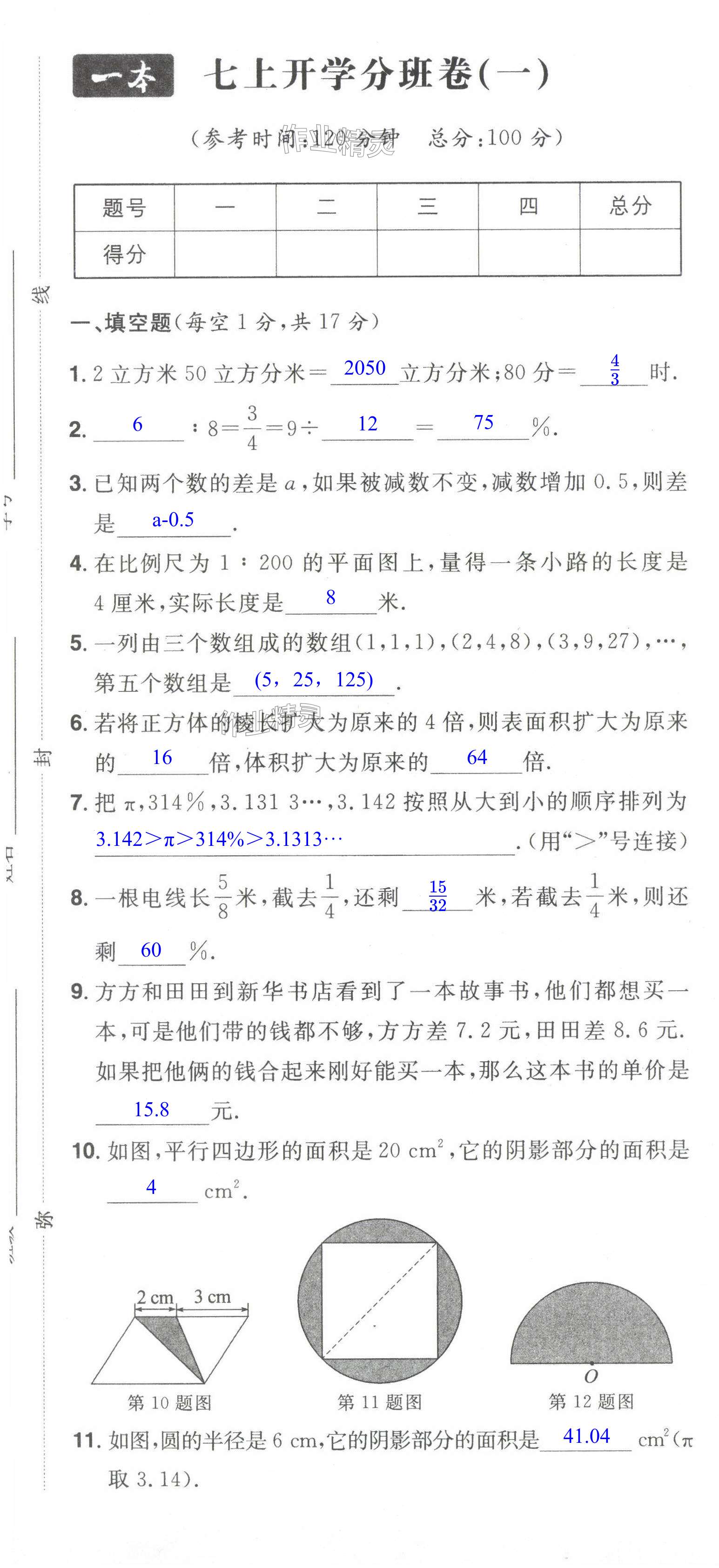 注:目前有些书本章节名称可能整理的还不是很完善,但都是按照顺序排列的,请同学们按照顺序仔细查找。练习册 2024年一本预备新初一小升初数学 答案主要是用来给同学们做完题方便对答案用的,请勿直接抄袭。