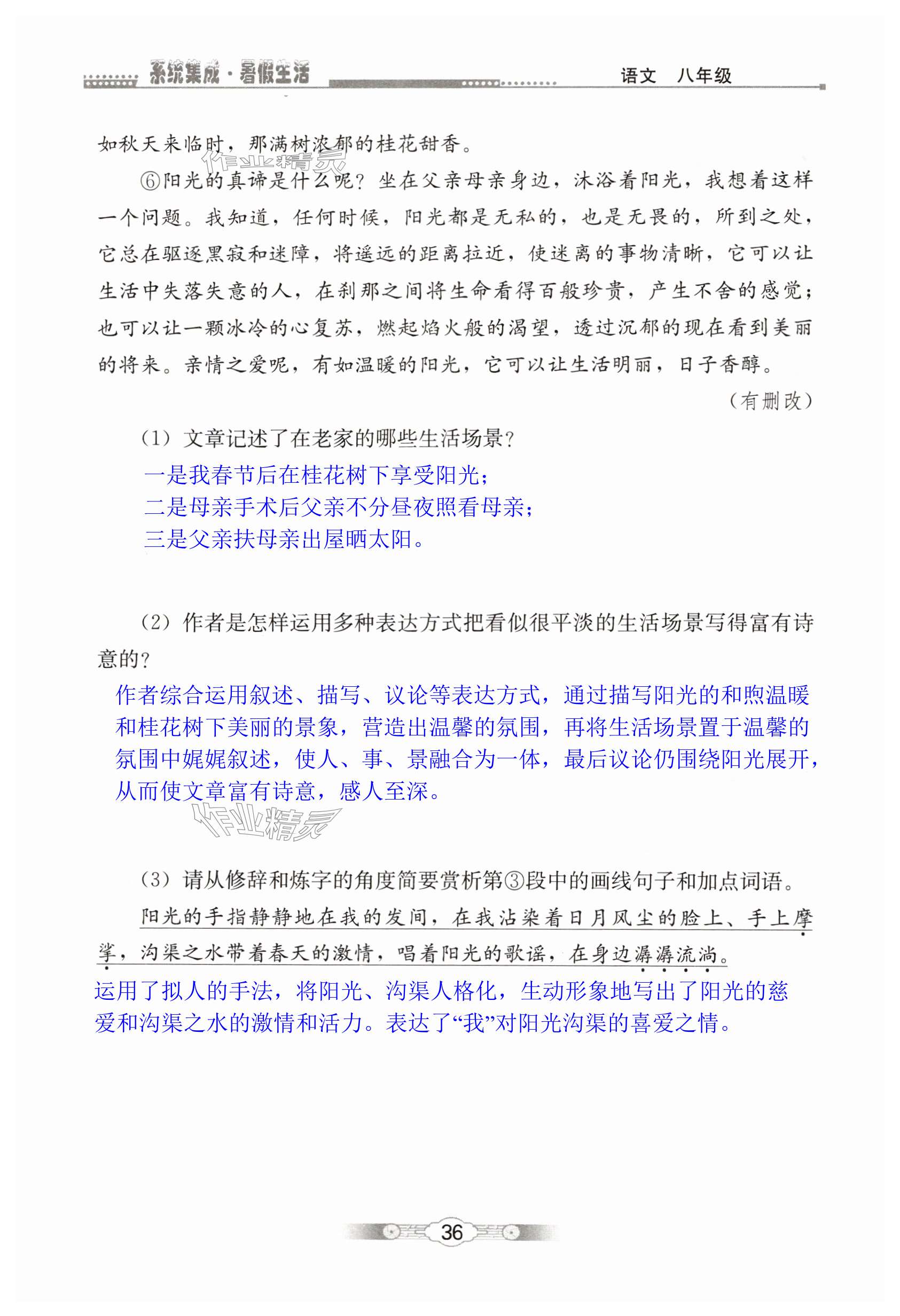 注:目前有些书本章节名称可能整理的还不是很完善,但都是按照顺序排列的,请同学们按照顺序仔细查找。练习册 2024年系统集成暑假生活北京师范大学出版社八年级语文 答案主要是用来给同学们做完题方便对答案用的,请勿直接抄袭。