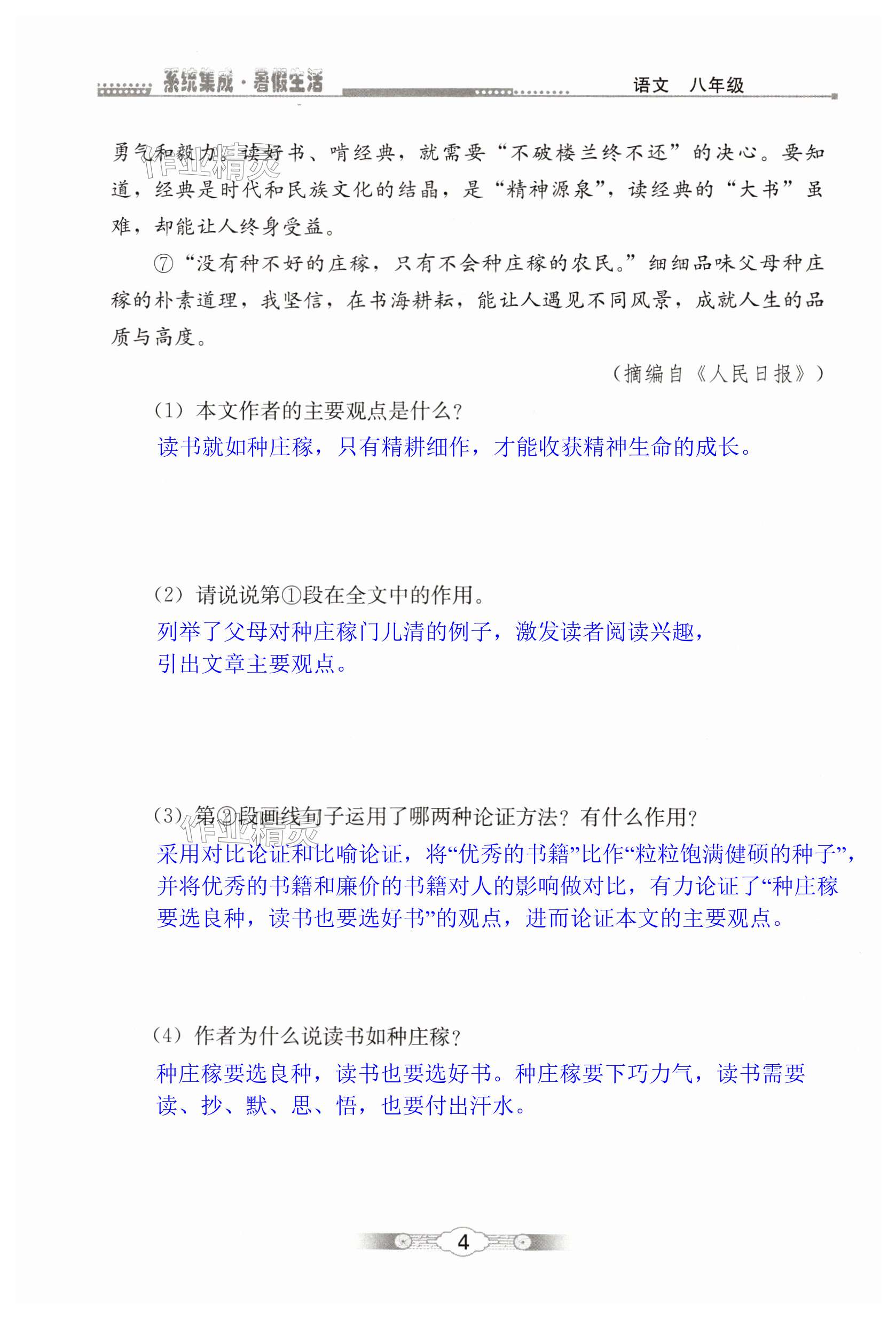 注:目前有些书本章节名称可能整理的还不是很完善,但都是按照顺序排列的,请同学们按照顺序仔细查找。练习册 2024年系统集成暑假生活北京师范大学出版社八年级语文 答案主要是用来给同学们做完题方便对答案用的,请勿直接抄袭。