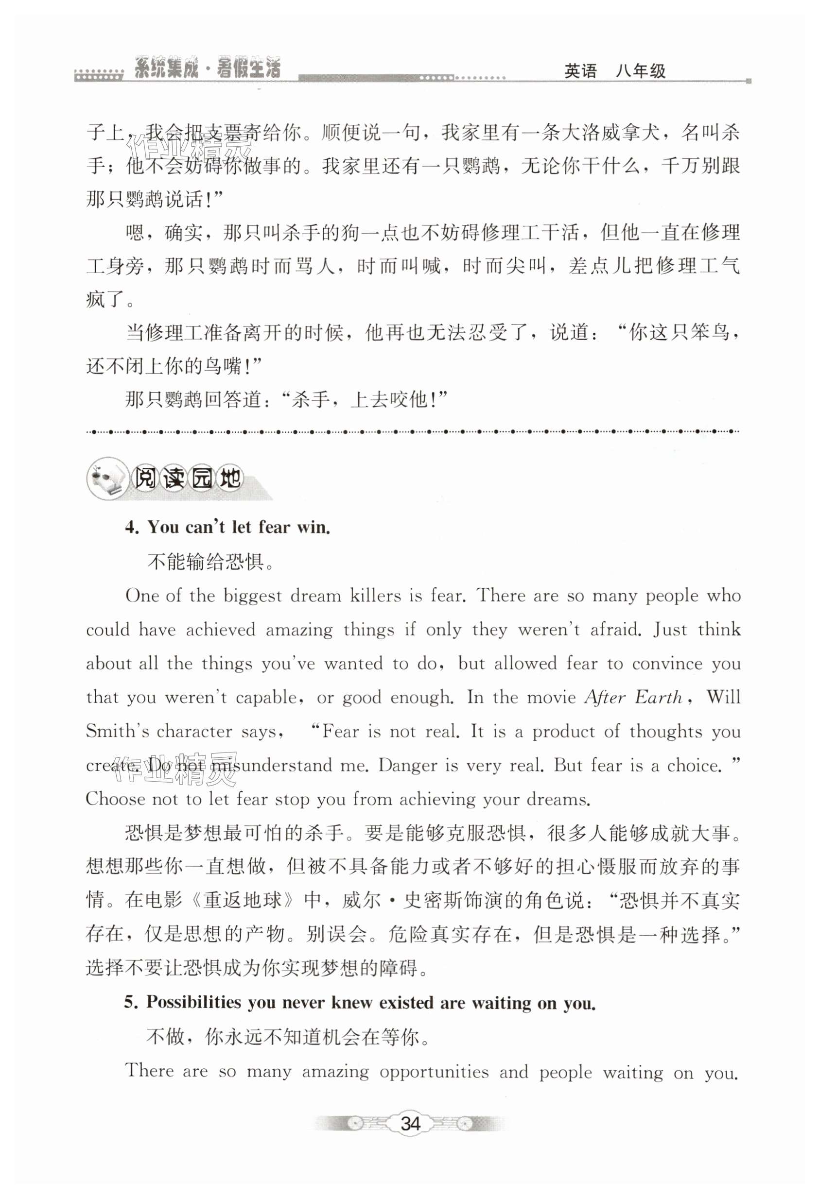 注:目前有些书本章节名称可能整理的还不是很完善,但都是按照顺序排列的,请同学们按照顺序仔细查找。练习册 2024年系统集成暑假生活八年级英语 答案主要是用来给同学们做完题方便对答案用的,请勿直接抄袭。