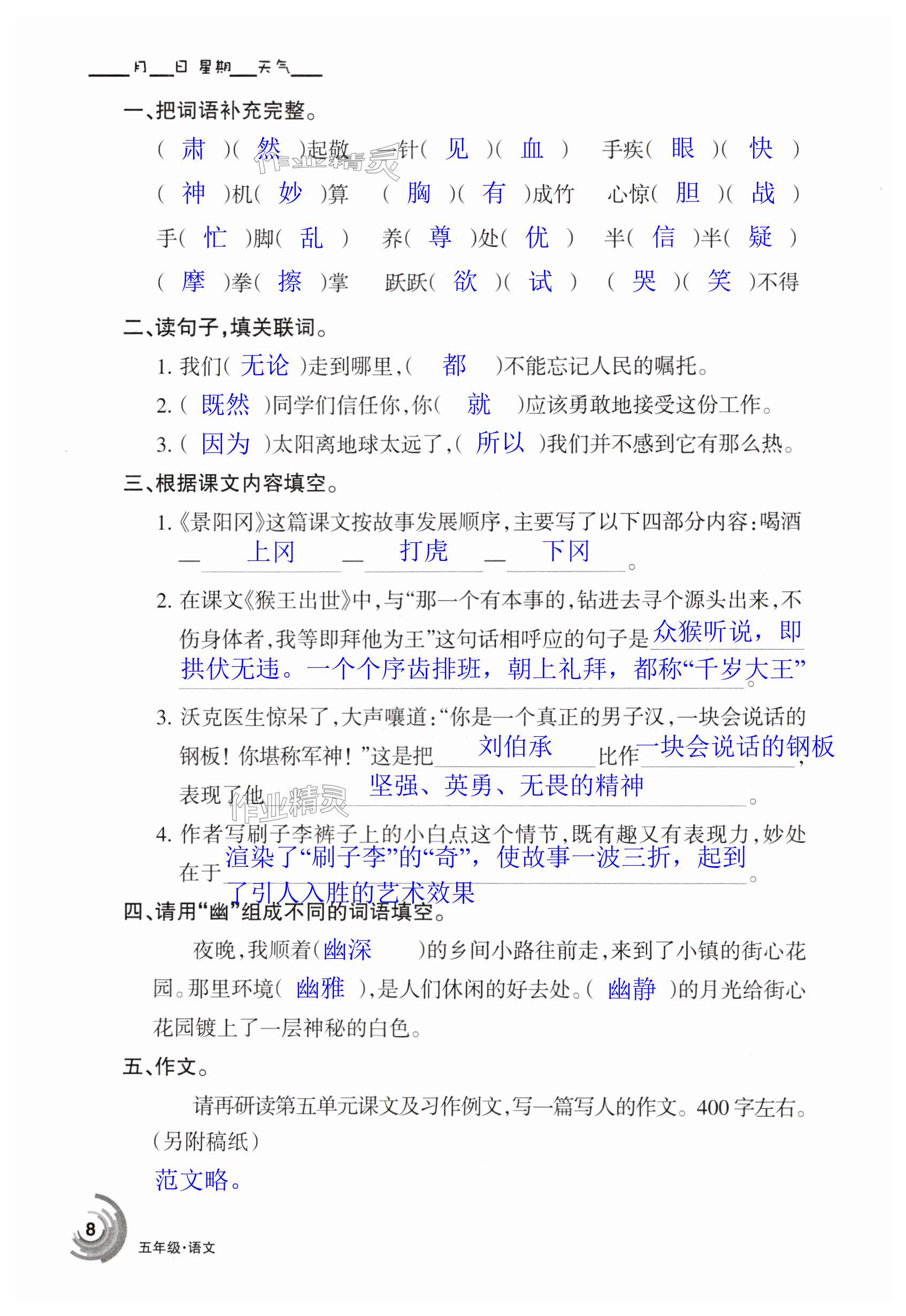 注:目前有些书本章节名称可能整理的还不是很完善,但都是按照顺序排列的,请同学们按照顺序仔细查找。练习册 2024年快乐暑假甘肃少年儿童出版社五年级语文数学人教版 答案主要是用来给同学们做完题方便对答案用的,请勿直接抄袭。