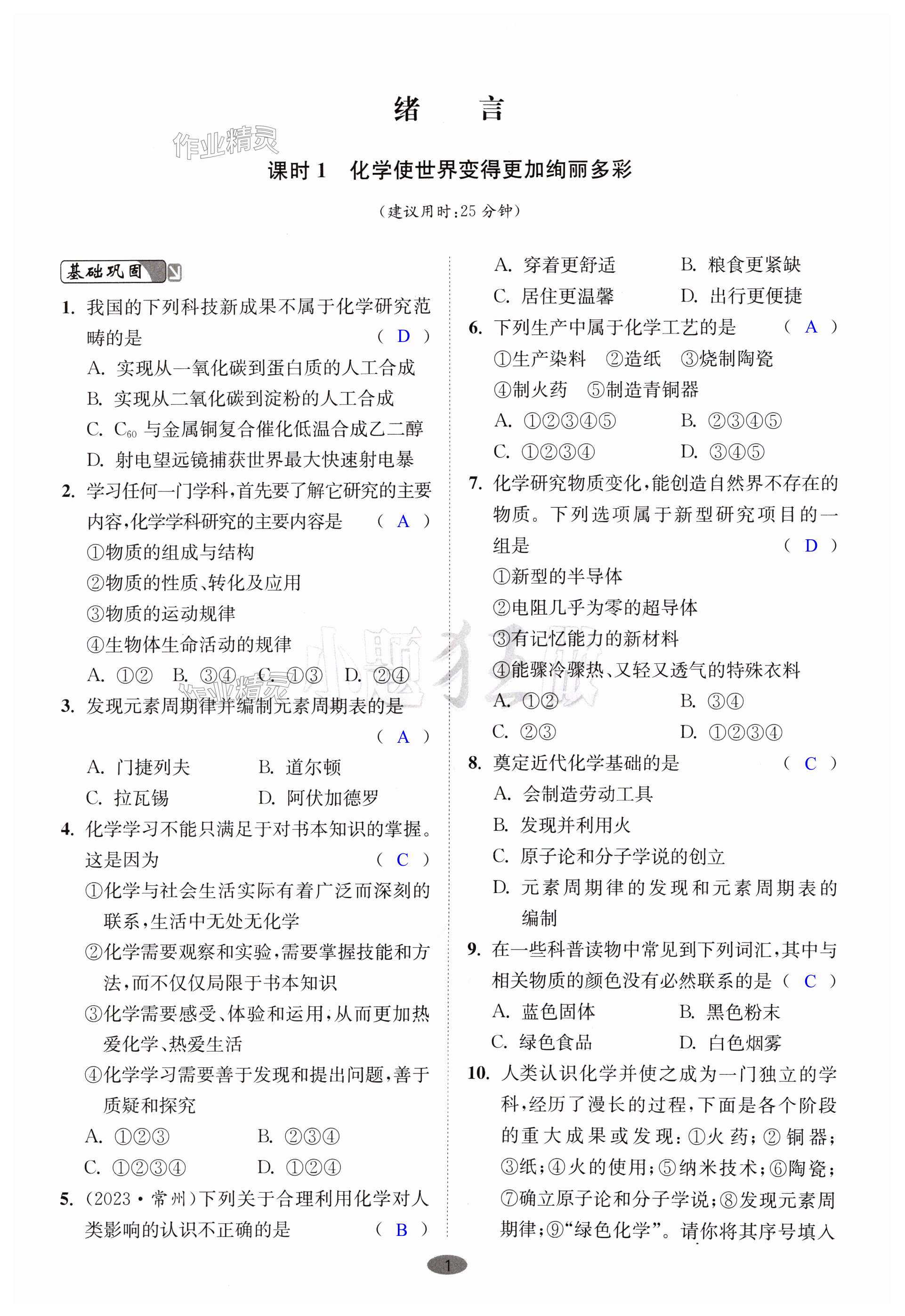 精英家教网> 2024年初中化学小题狂做九年级上册人教版提优版 > 参考答案第1页 参考答案