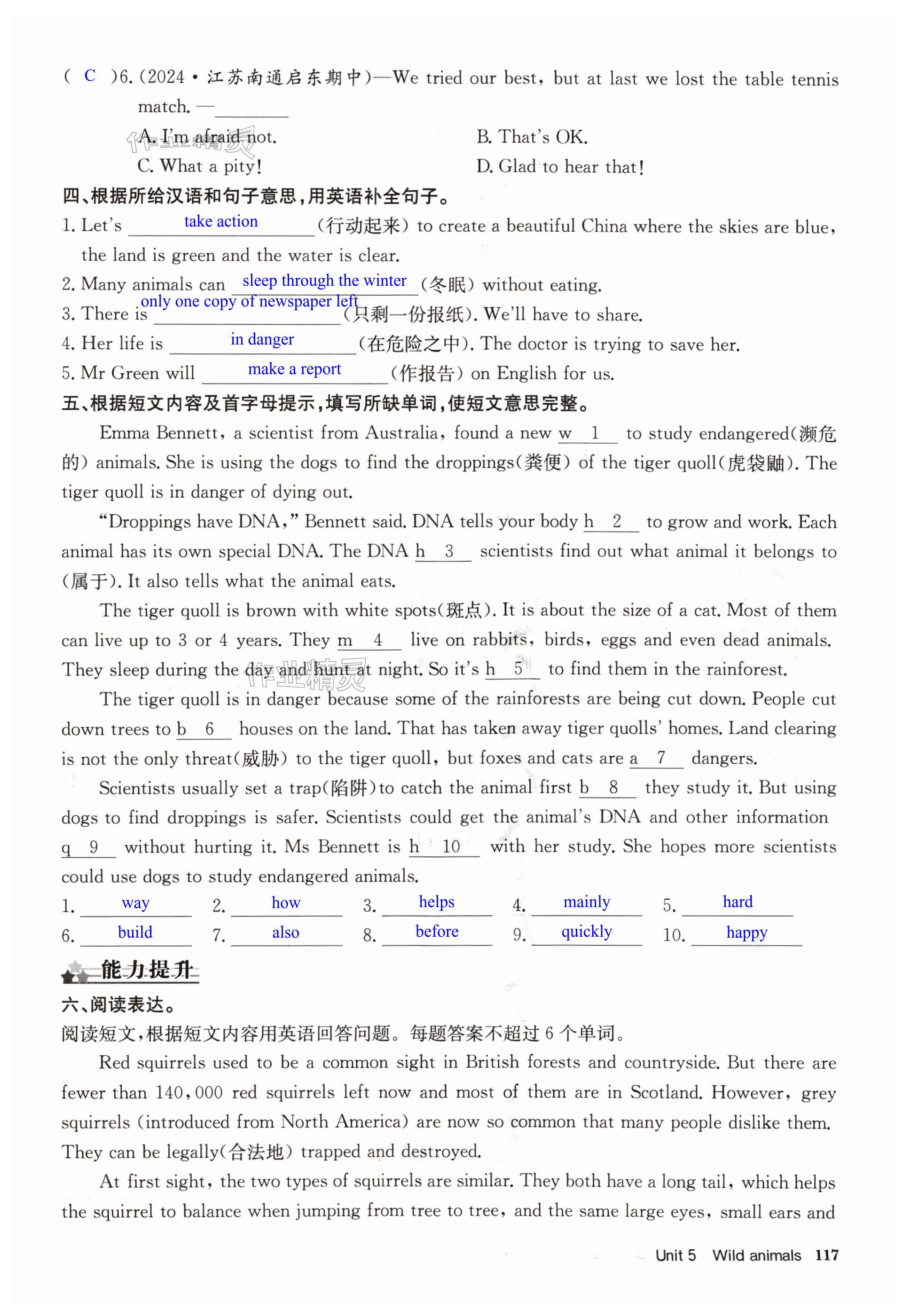 注:目前有些书本章节名称可能整理的还不是很完善,但都是按照顺序排列的,请同学们按照顺序仔细查找。练习册 2024年启东中学作业本八年级英语上册译林版连云港专版 答案主要是用来给同学们做完题方便对答案用的,请勿直接抄袭。