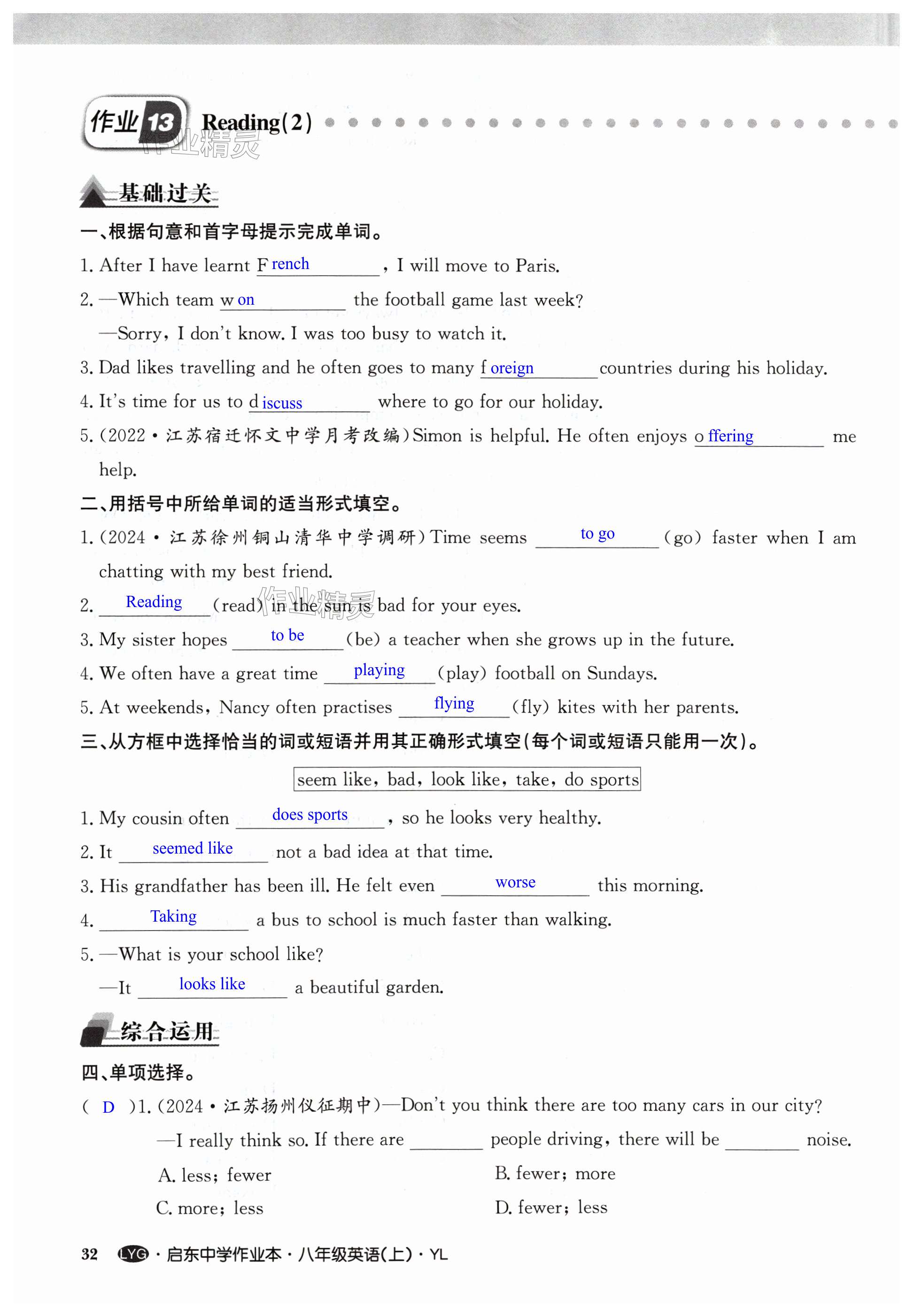 注:目前有些书本章节名称可能整理的还不是很完善,但都是按照顺序排列的,请同学们按照顺序仔细查找。练习册 2024年启东中学作业本八年级英语上册译林版连云港专版 答案主要是用来给同学们做完题方便对答案用的,请勿直接抄袭。