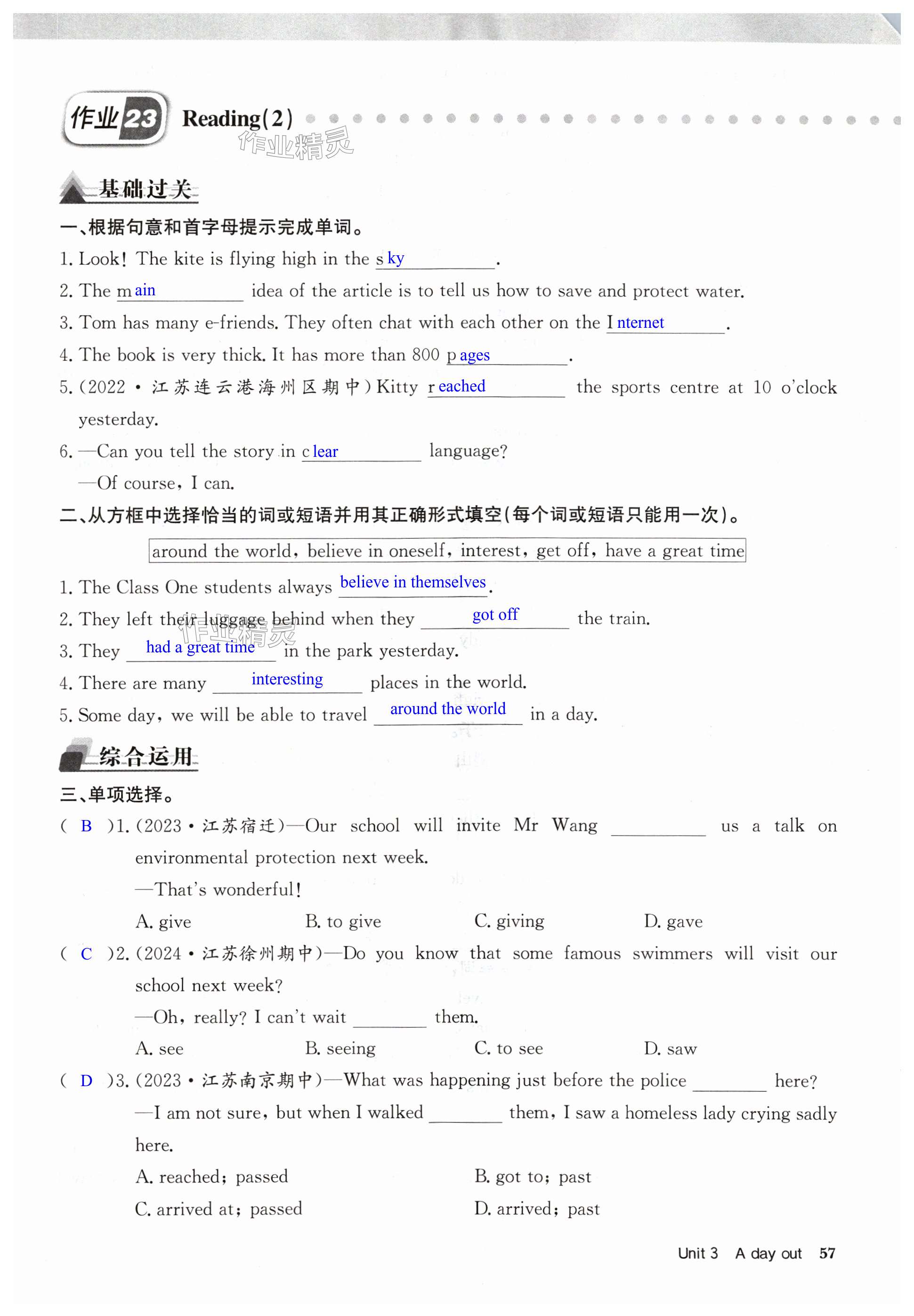 注:目前有些书本章节名称可能整理的还不是很完善,但都是按照顺序排列的,请同学们按照顺序仔细查找。练习册 2024年启东中学作业本八年级英语上册译林版连云港专版 答案主要是用来给同学们做完题方便对答案用的,请勿直接抄袭。