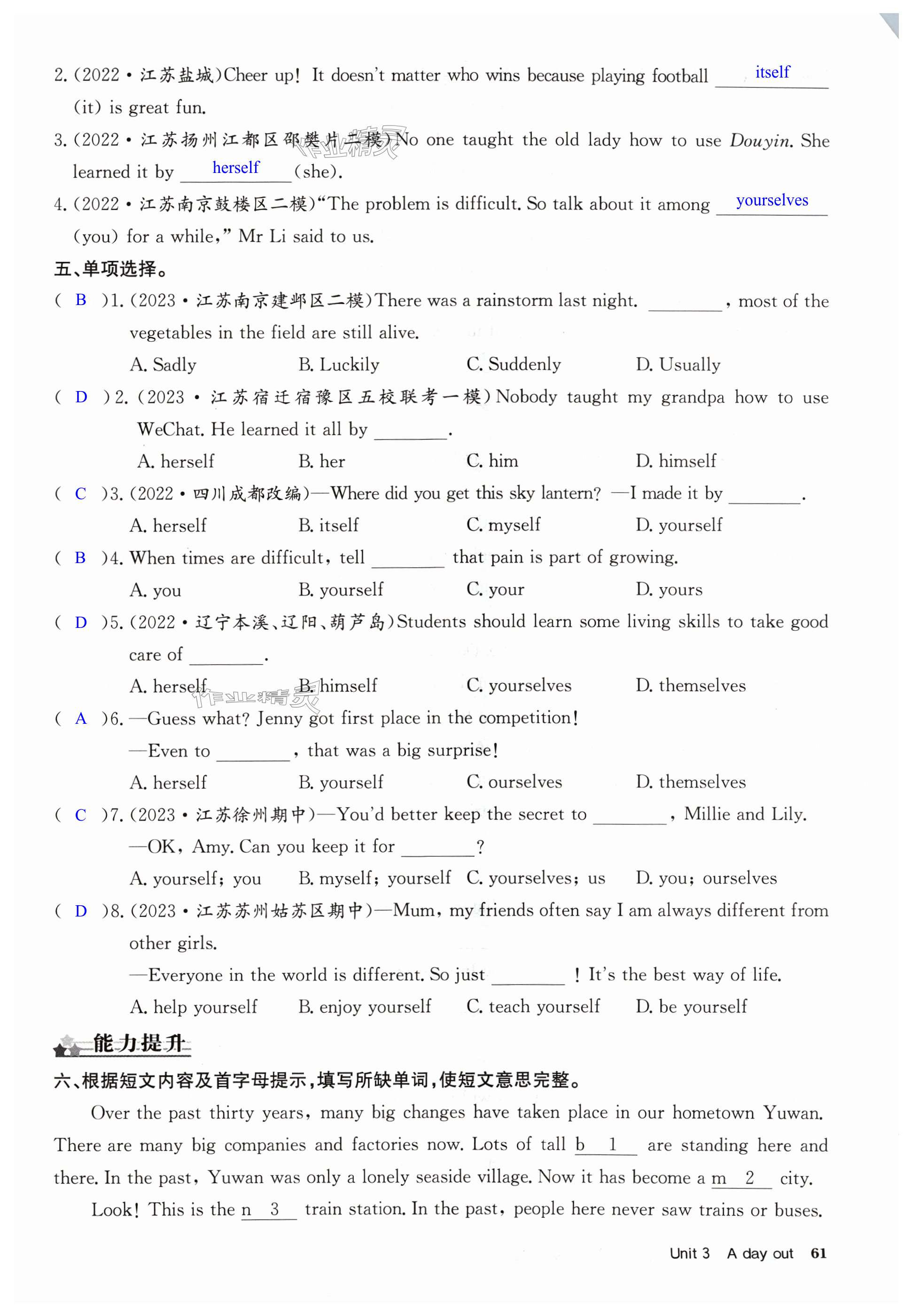 注:目前有些书本章节名称可能整理的还不是很完善,但都是按照顺序排列的,请同学们按照顺序仔细查找。练习册 2024年启东中学作业本八年级英语上册译林版连云港专版 答案主要是用来给同学们做完题方便对答案用的,请勿直接抄袭。