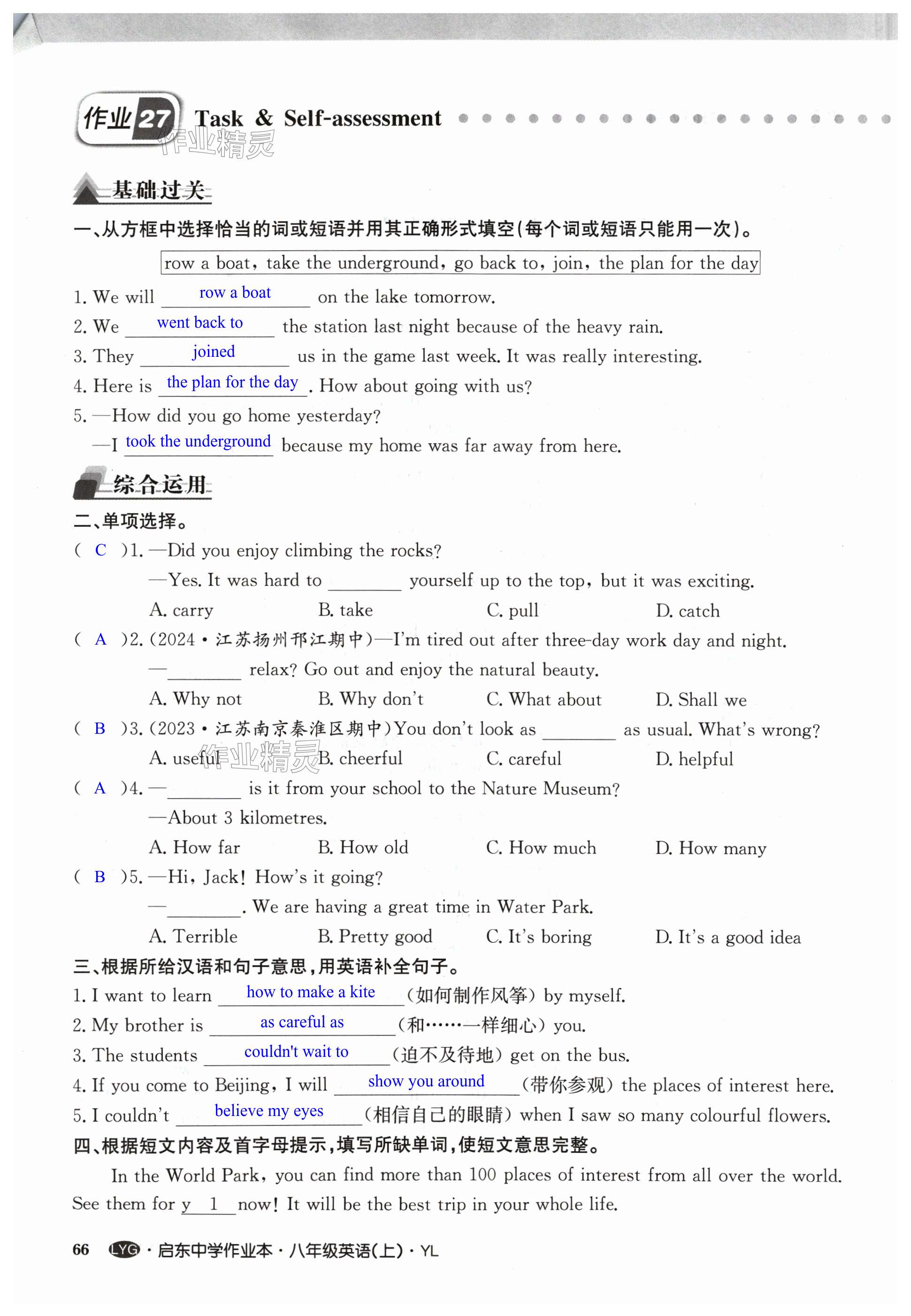 注:目前有些书本章节名称可能整理的还不是很完善,但都是按照顺序排列的,请同学们按照顺序仔细查找。练习册 2024年启东中学作业本八年级英语上册译林版连云港专版 答案主要是用来给同学们做完题方便对答案用的,请勿直接抄袭。