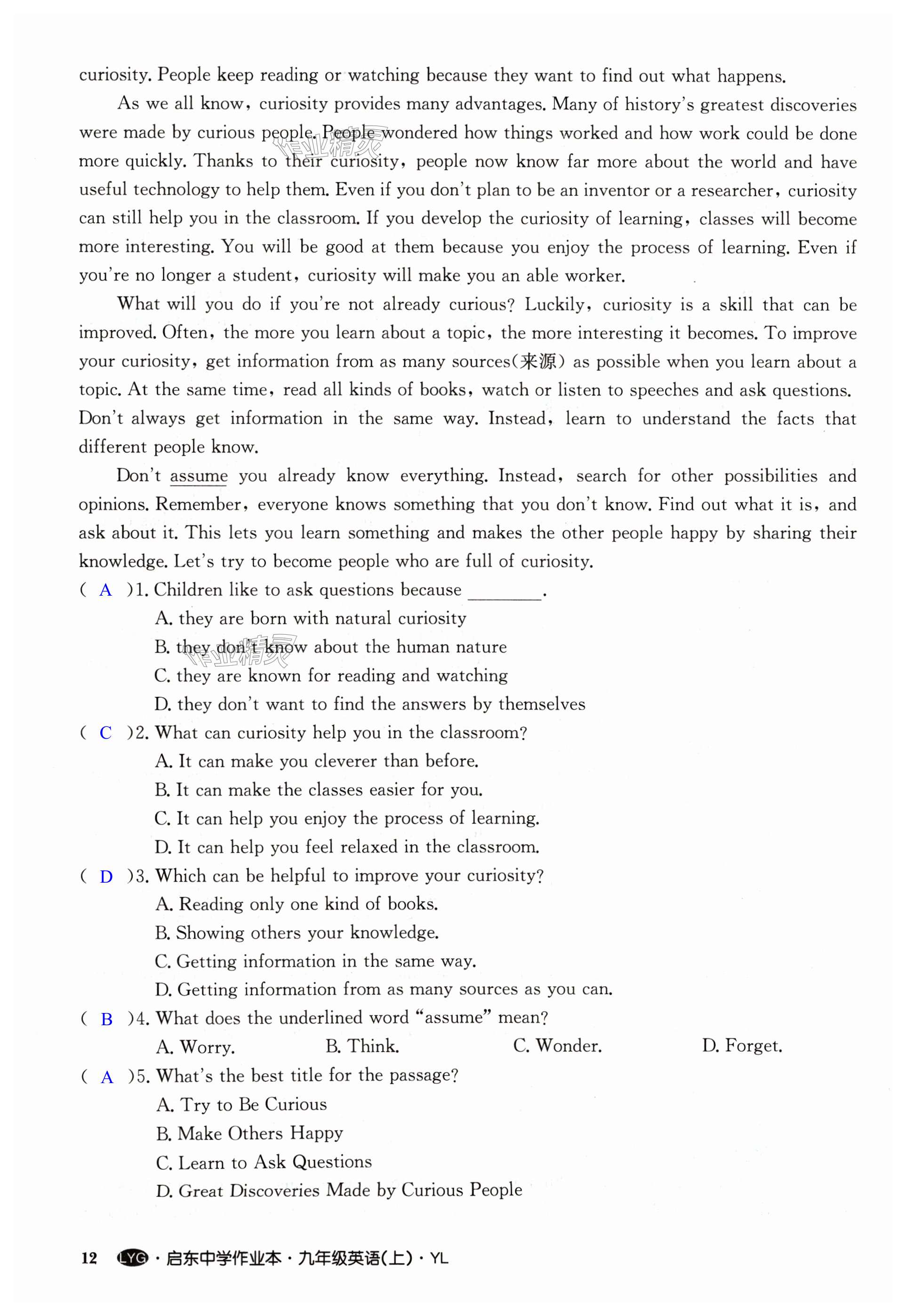 注:目前有些书本章节名称可能整理的还不是很完善,但都是按照顺序排列的,请同学们按照顺序仔细查找。练习册 2024年启东中学作业本九年级英语上册译林版连云港专版 答案主要是用来给同学们做完题方便对答案用的,请勿直接抄袭。