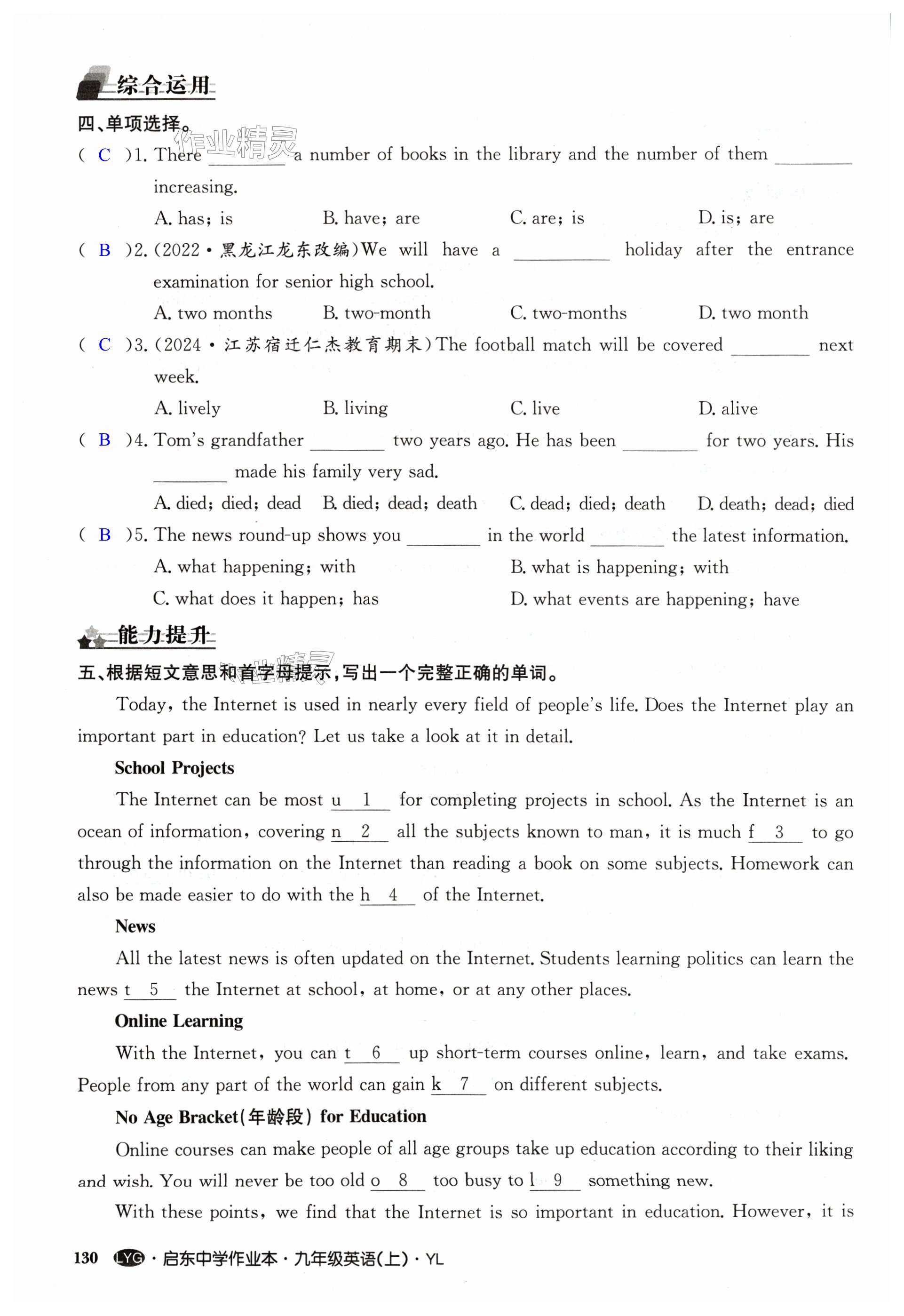 注:目前有些书本章节名称可能整理的还不是很完善,但都是按照顺序排列的,请同学们按照顺序仔细查找。练习册 2024年启东中学作业本九年级英语上册译林版连云港专版 答案主要是用来给同学们做完题方便对答案用的,请勿直接抄袭。