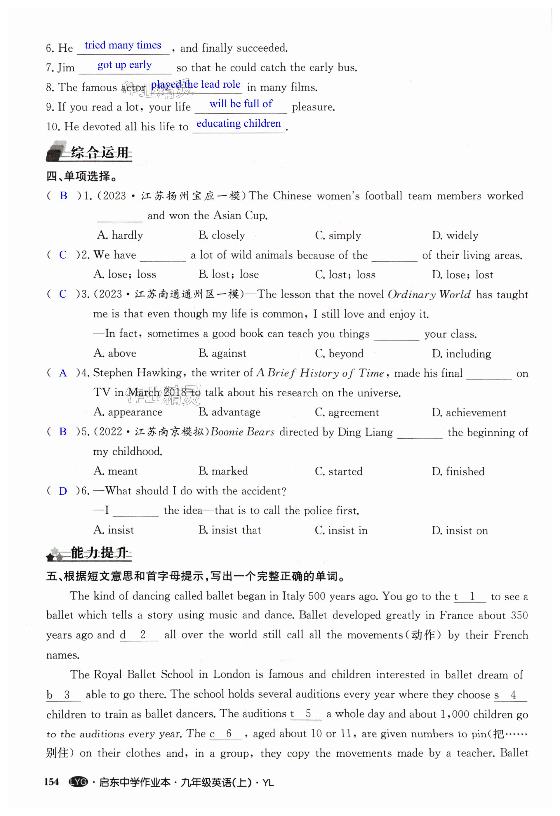 注:目前有些书本章节名称可能整理的还不是很完善,但都是按照顺序排列的,请同学们按照顺序仔细查找。练习册 2024年启东中学作业本九年级英语上册译林版连云港专版 答案主要是用来给同学们做完题方便对答案用的,请勿直接抄袭。