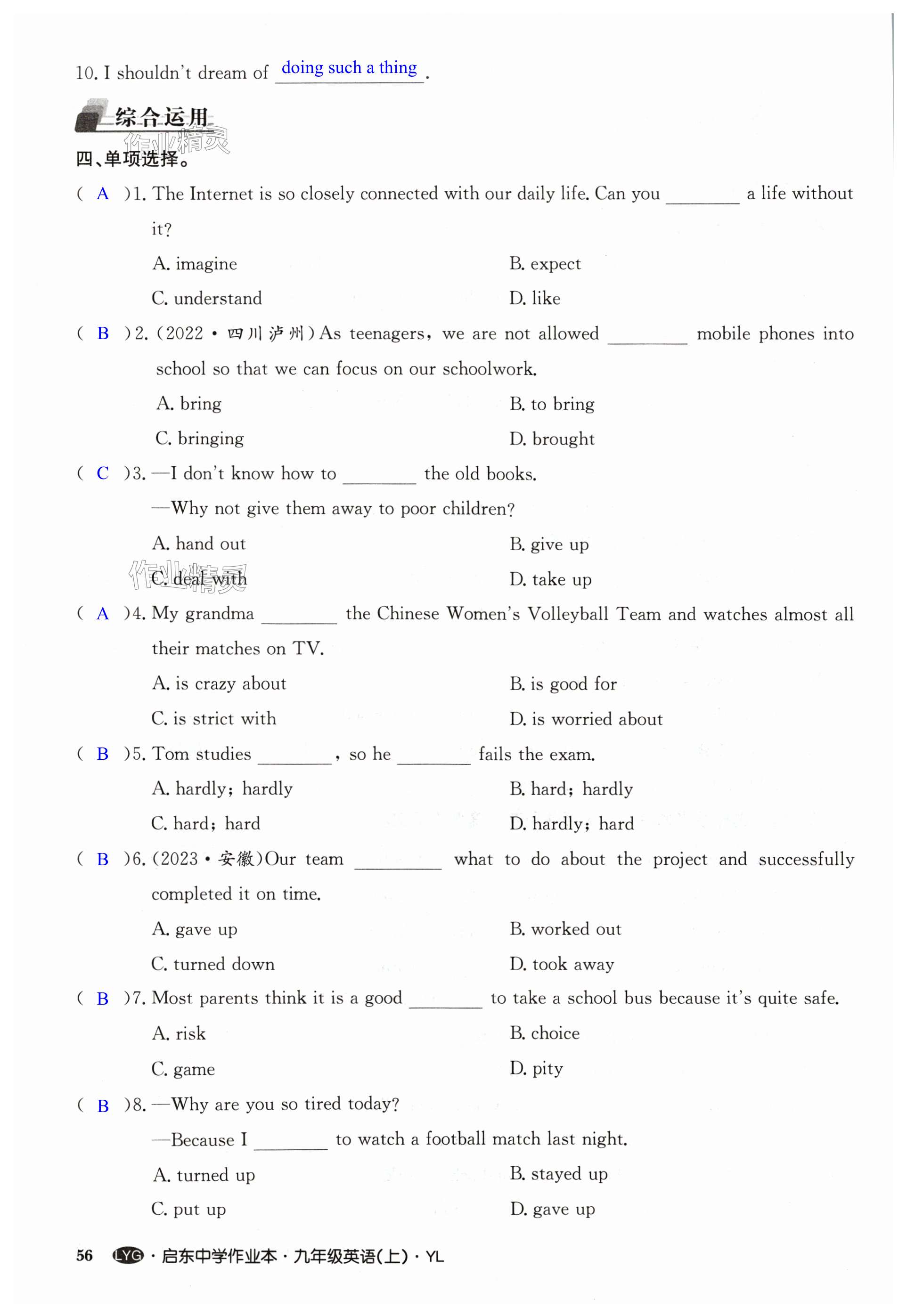 注:目前有些书本章节名称可能整理的还不是很完善,但都是按照顺序排列的,请同学们按照顺序仔细查找。练习册 2024年启东中学作业本九年级英语上册译林版连云港专版 答案主要是用来给同学们做完题方便对答案用的,请勿直接抄袭。
