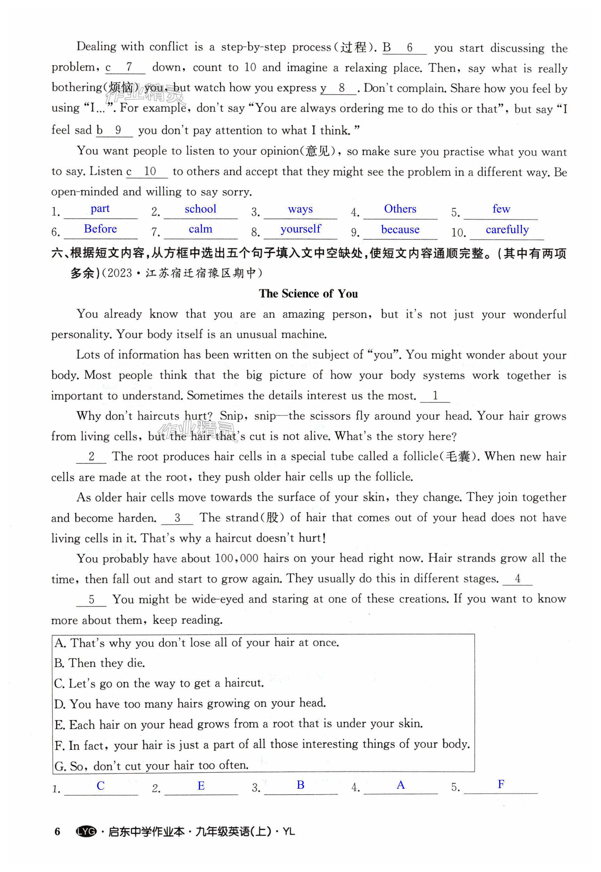 注:目前有些书本章节名称可能整理的还不是很完善,但都是按照顺序排列的,请同学们按照顺序仔细查找。练习册 2024年启东中学作业本九年级英语上册译林版连云港专版 答案主要是用来给同学们做完题方便对答案用的,请勿直接抄袭。