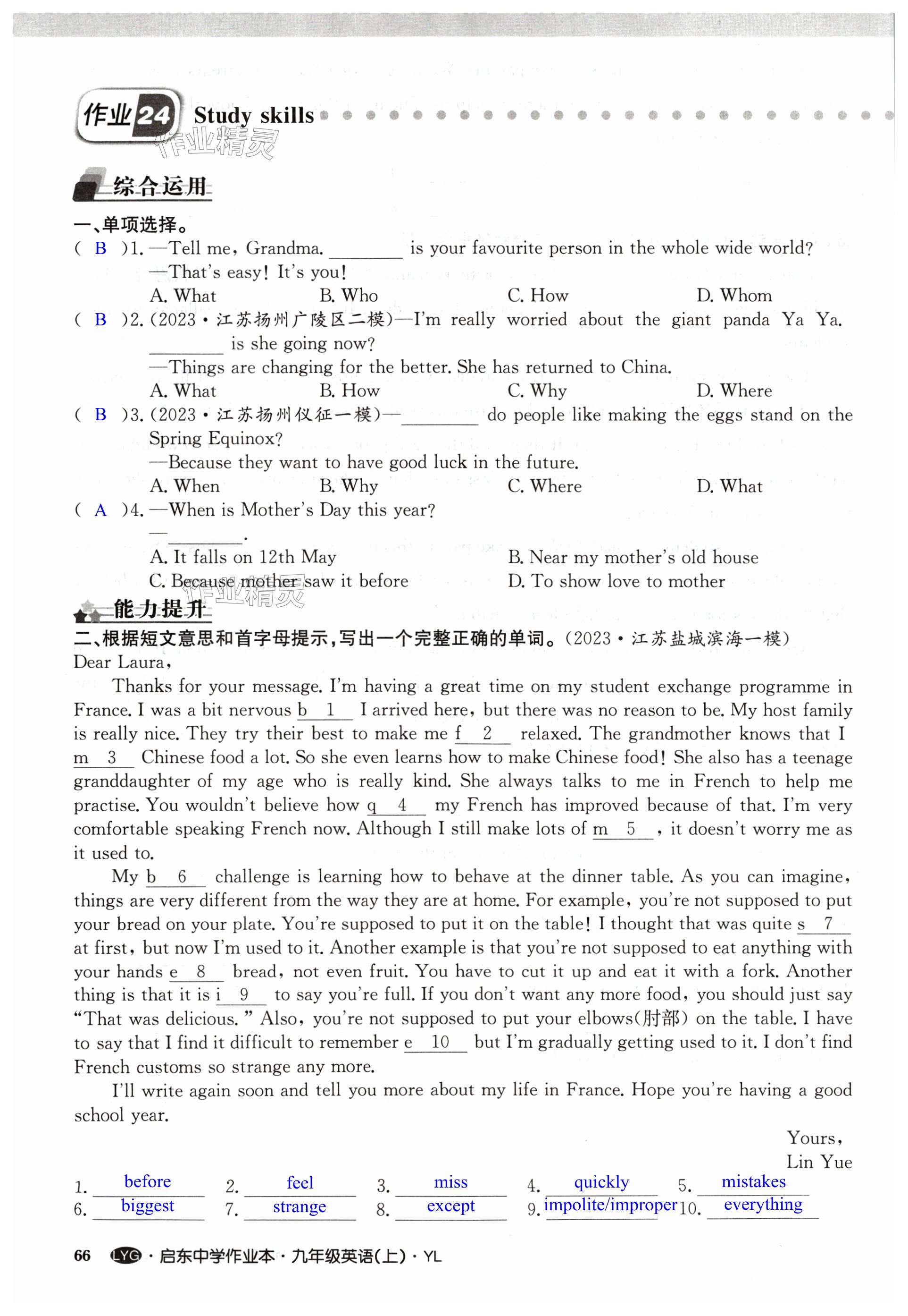 注:目前有些书本章节名称可能整理的还不是很完善,但都是按照顺序排列的,请同学们按照顺序仔细查找。练习册 2024年启东中学作业本九年级英语上册译林版连云港专版 答案主要是用来给同学们做完题方便对答案用的,请勿直接抄袭。
