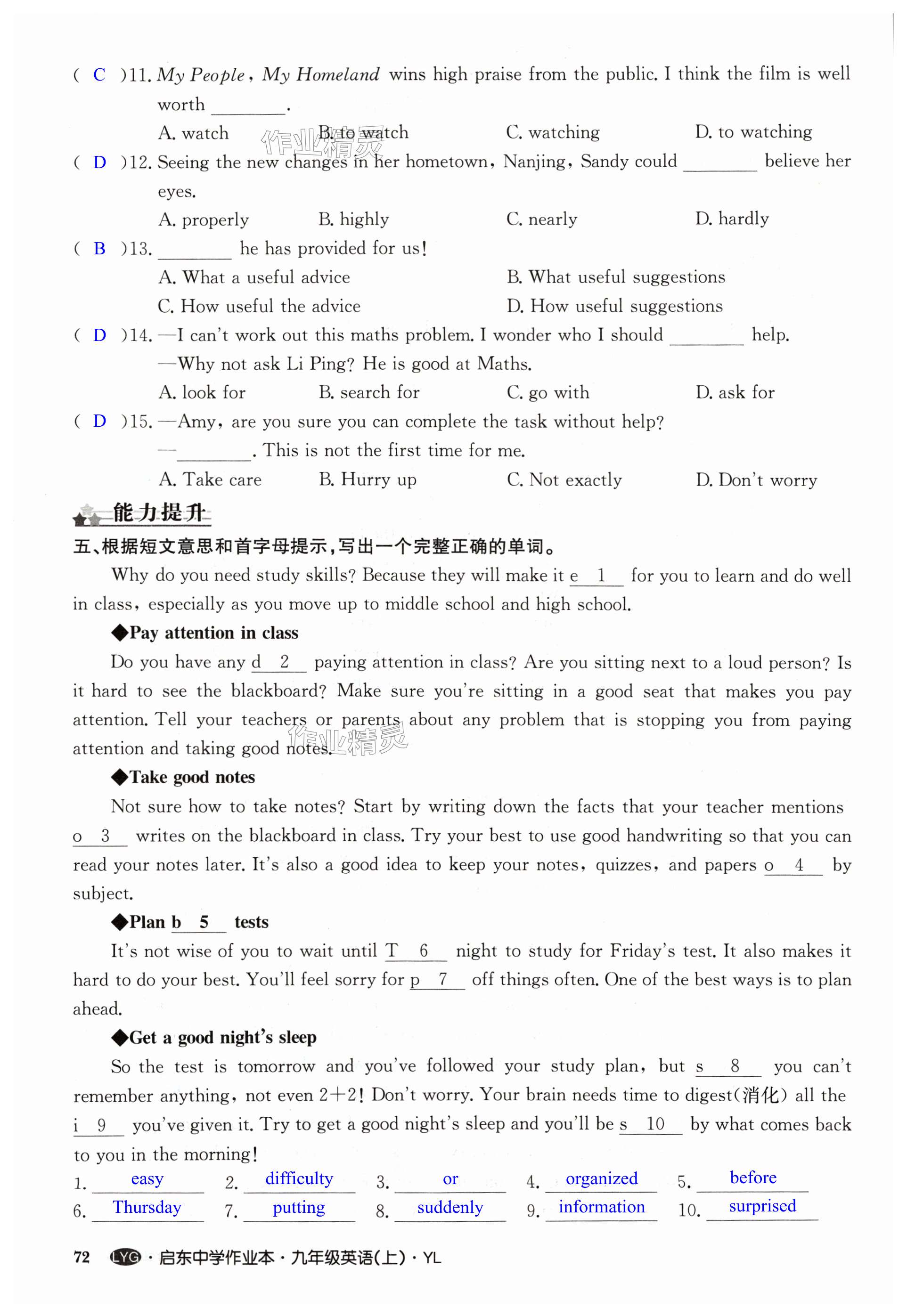 注:目前有些书本章节名称可能整理的还不是很完善,但都是按照顺序排列的,请同学们按照顺序仔细查找。练习册 2024年启东中学作业本九年级英语上册译林版连云港专版 答案主要是用来给同学们做完题方便对答案用的,请勿直接抄袭。