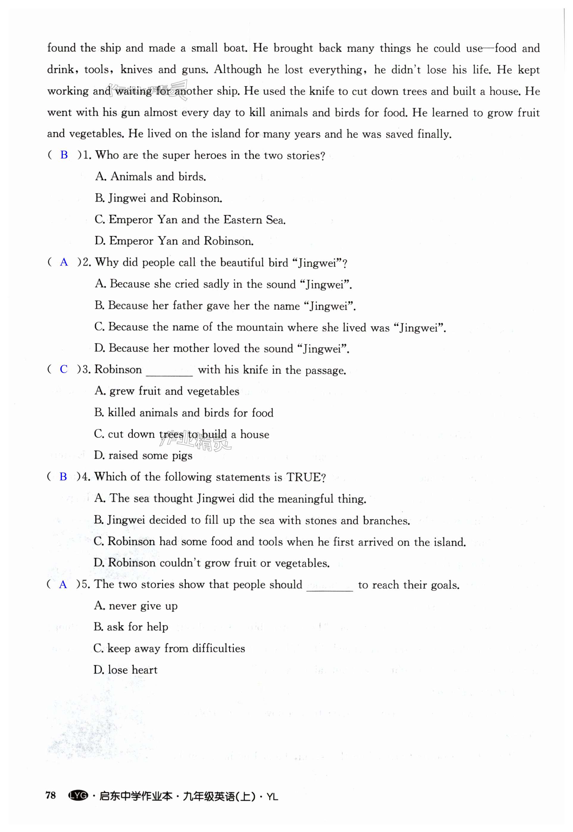 注:目前有些书本章节名称可能整理的还不是很完善,但都是按照顺序排列的,请同学们按照顺序仔细查找。练习册 2024年启东中学作业本九年级英语上册译林版连云港专版 答案主要是用来给同学们做完题方便对答案用的,请勿直接抄袭。