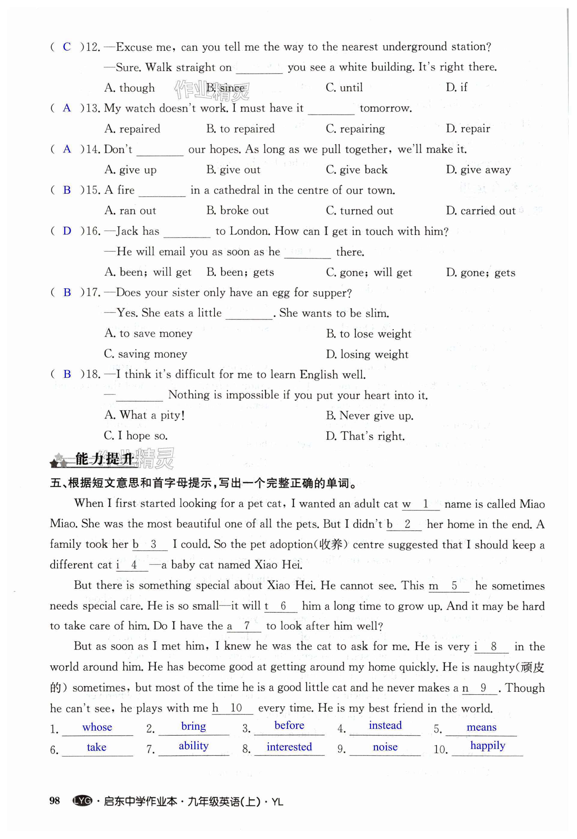 注:目前有些书本章节名称可能整理的还不是很完善,但都是按照顺序排列的,请同学们按照顺序仔细查找。练习册 2024年启东中学作业本九年级英语上册译林版连云港专版 答案主要是用来给同学们做完题方便对答案用的,请勿直接抄袭。