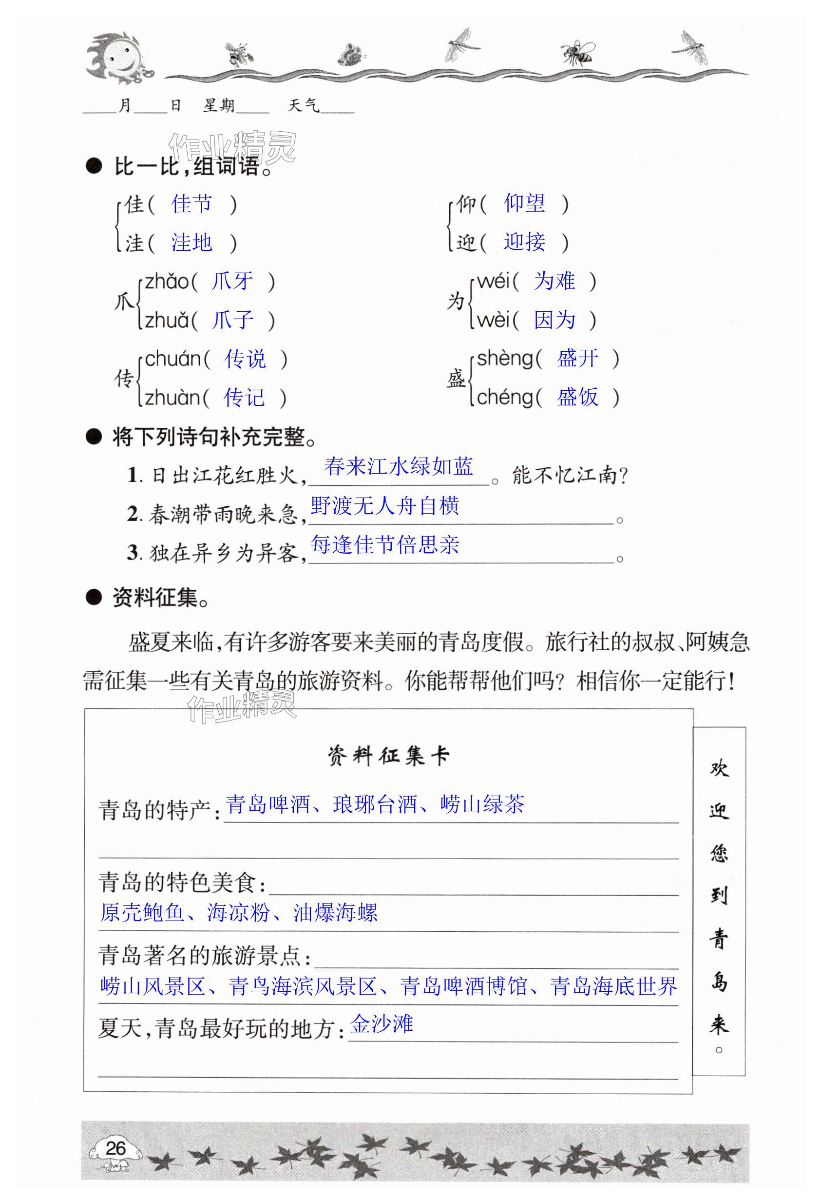 注:目前有些书本章节名称可能整理的还不是很完善,但都是按照顺序排列的,请同学们按照顺序仔细查找。练习册 2024年暑假生活指导三年级六三制青岛出版社 答案主要是用来给同学们做完题方便对答案用的,请勿直接抄袭。
