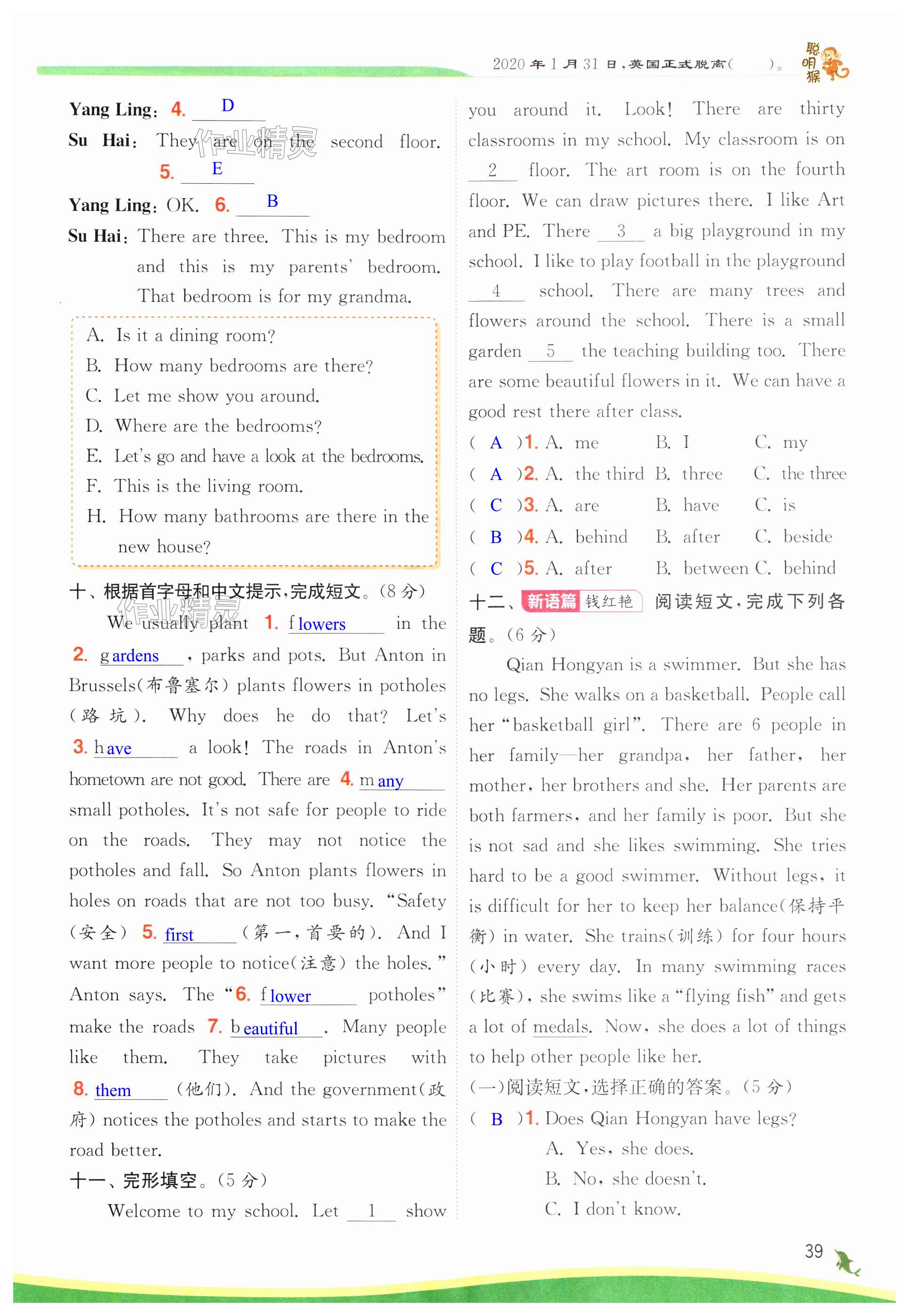 注:目前有些书本章节名称可能整理的还不是很完善,但都是按照顺序排列的,请同学们按照顺序仔细查找。练习册 2024年实验班提优训练五年级英语上册译林版 答案主要是用来给同学们做完题方便对答案用的,请勿直接抄袭。