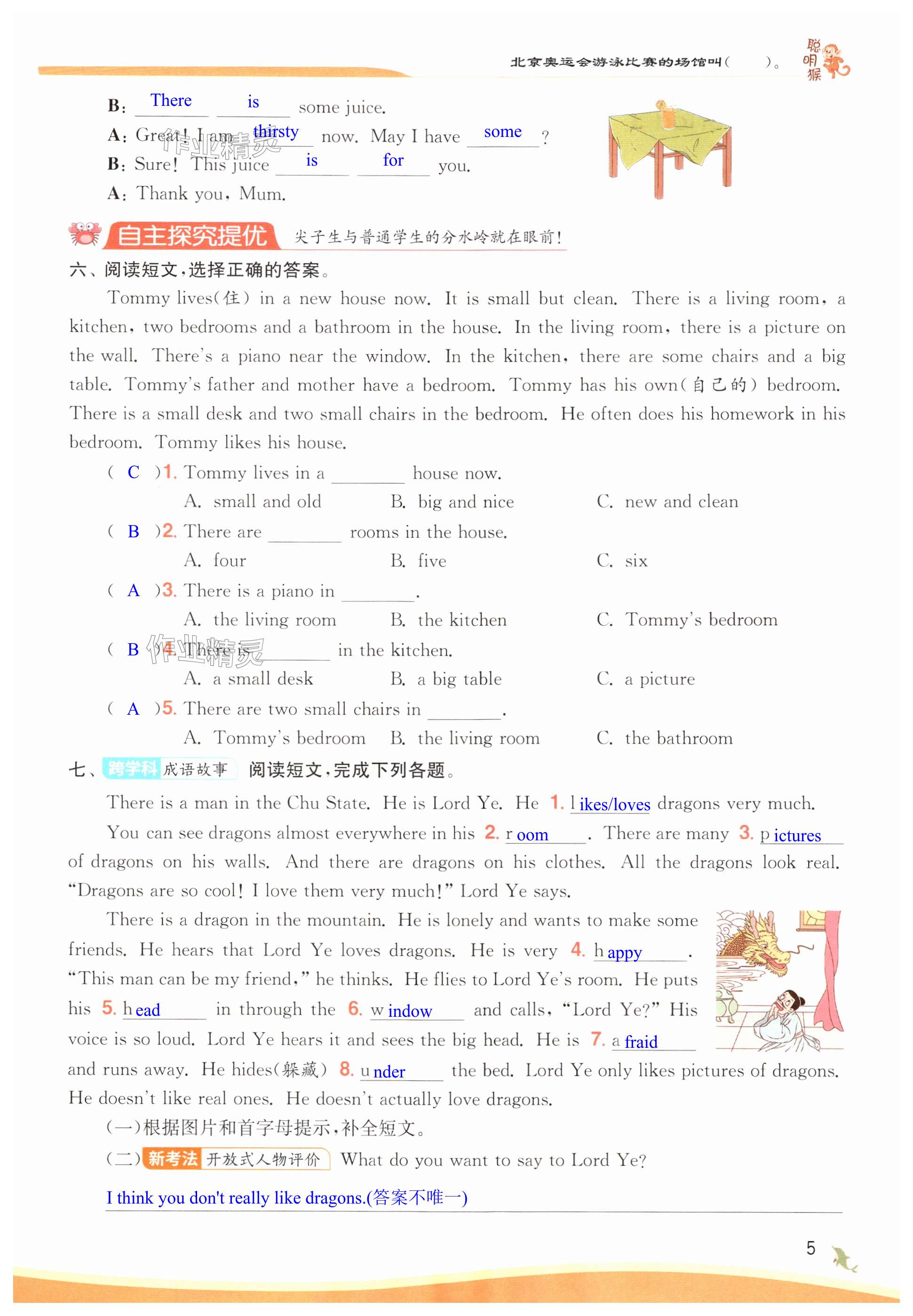 注:目前有些书本章节名称可能整理的还不是很完善,但都是按照顺序排列的,请同学们按照顺序仔细查找。练习册 2024年实验班提优训练五年级英语上册译林版 答案主要是用来给同学们做完题方便对答案用的,请勿直接抄袭。
