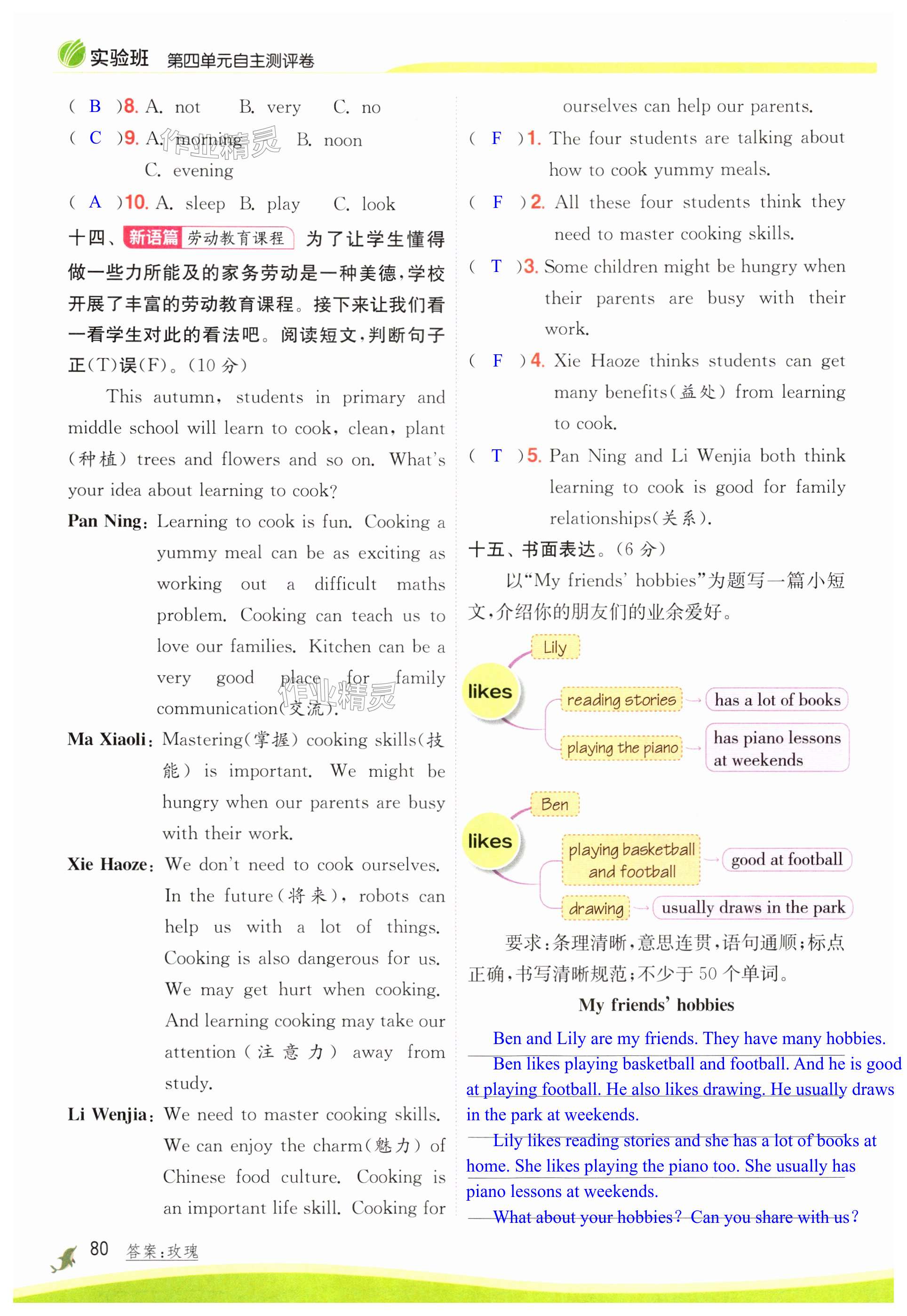 注:目前有些书本章节名称可能整理的还不是很完善,但都是按照顺序排列的,请同学们按照顺序仔细查找。练习册 2024年实验班提优训练五年级英语上册译林版 答案主要是用来给同学们做完题方便对答案用的,请勿直接抄袭。