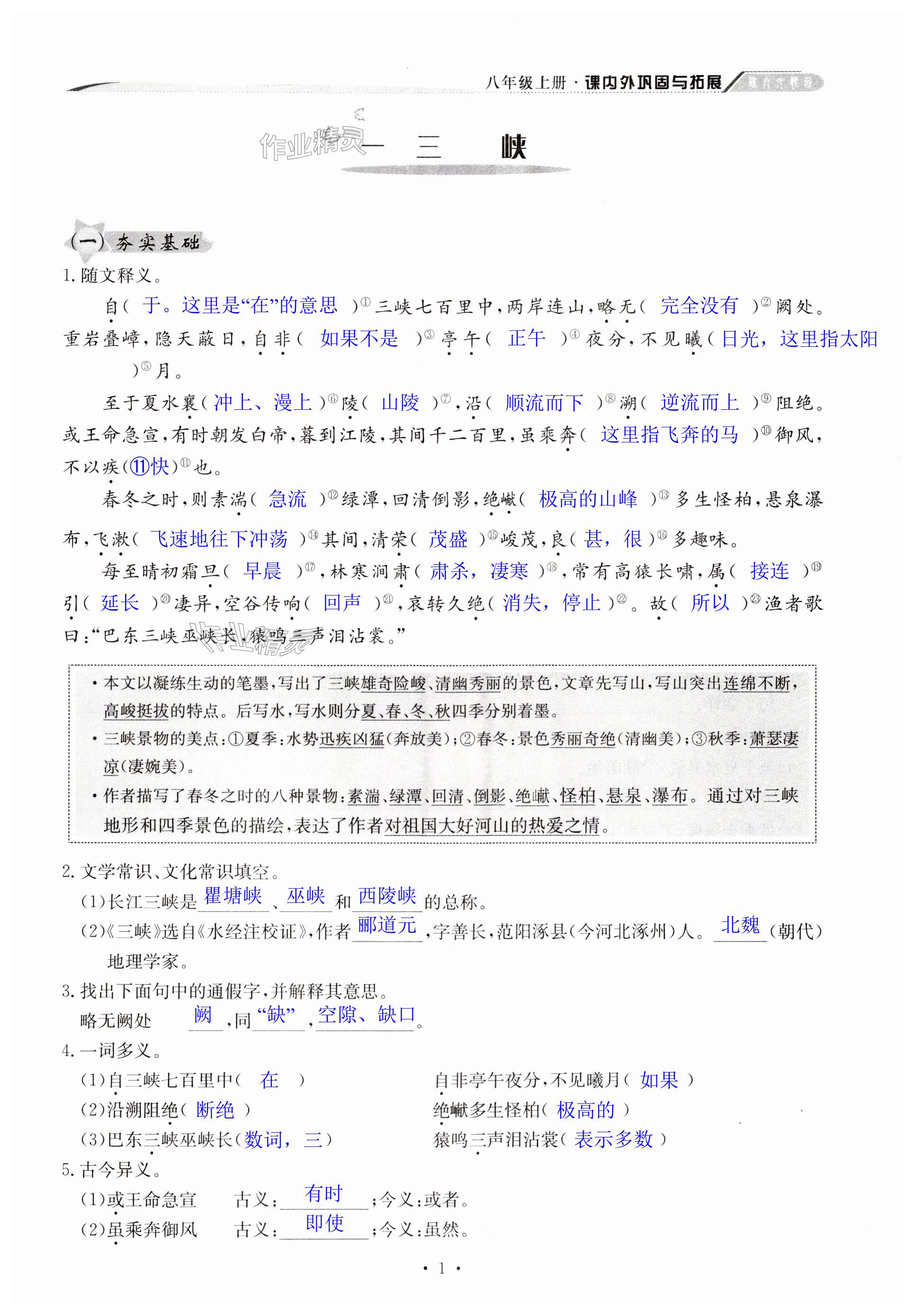 注:目前有些书本章节名称可能整理的还不是很完善,但都是按照顺序排列的,请同学们按照顺序仔细查找。练习册 2024年文言文课内外巩固与拓展八年级语文上册人教版 答案主要是用来给同学们做完题方便对答案用的,请勿直接抄袭。